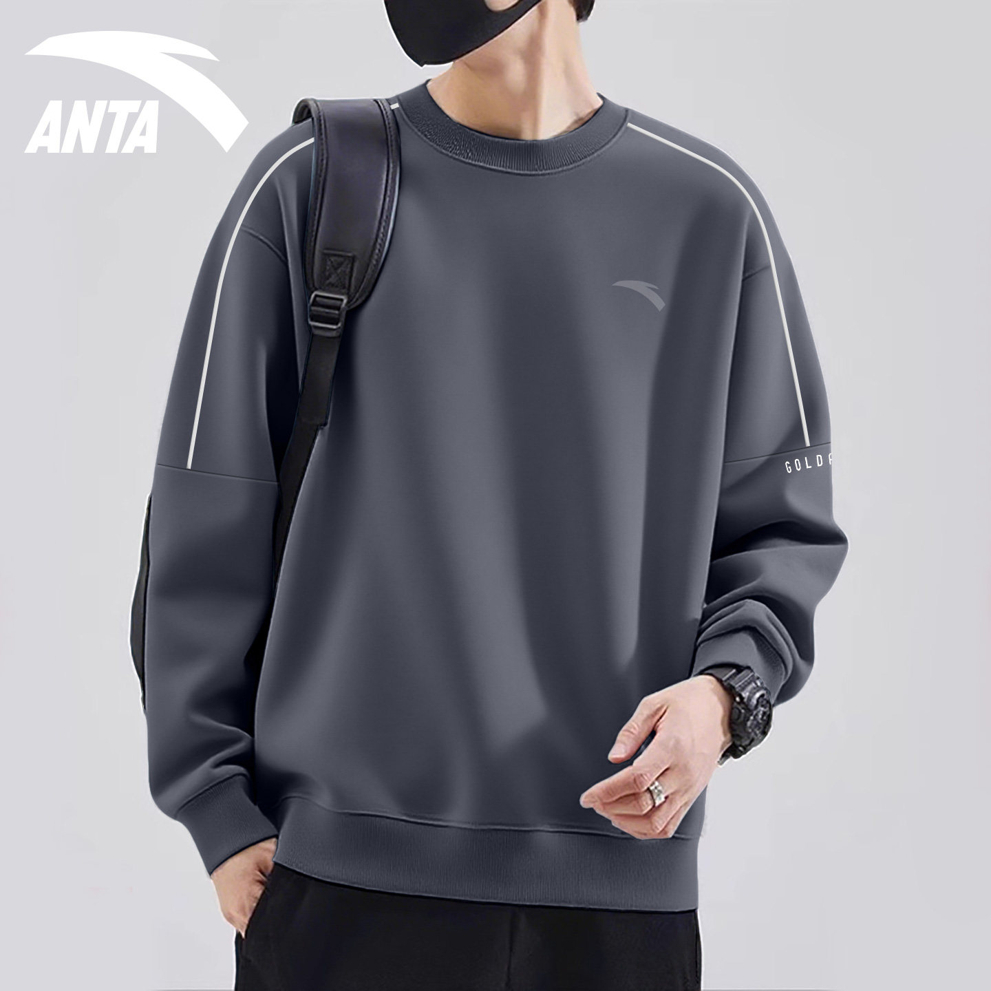 安踏卫衣男款秋冬季2026新款休闲通勤圆领长袖上衣宽松大码套头衫