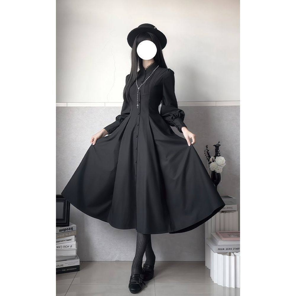 黑调修女 中长款收腰连衣裙冬季新款暗黑系优雅Lolita大摆连衣裙