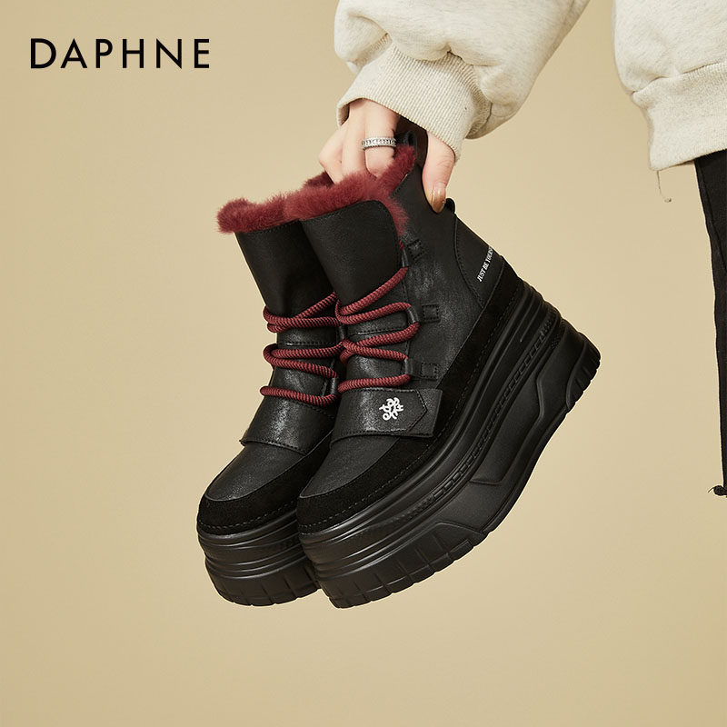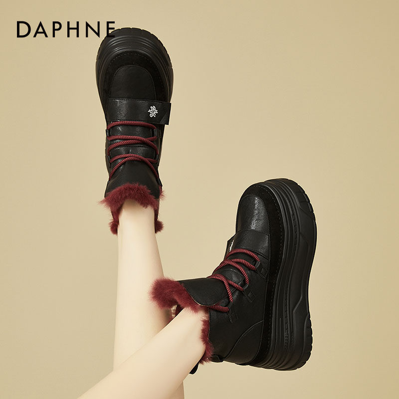 达芙妮加绒保暖雪地靴2026冬季新款女鞋内增高厚底短靴东北棉鞋子
