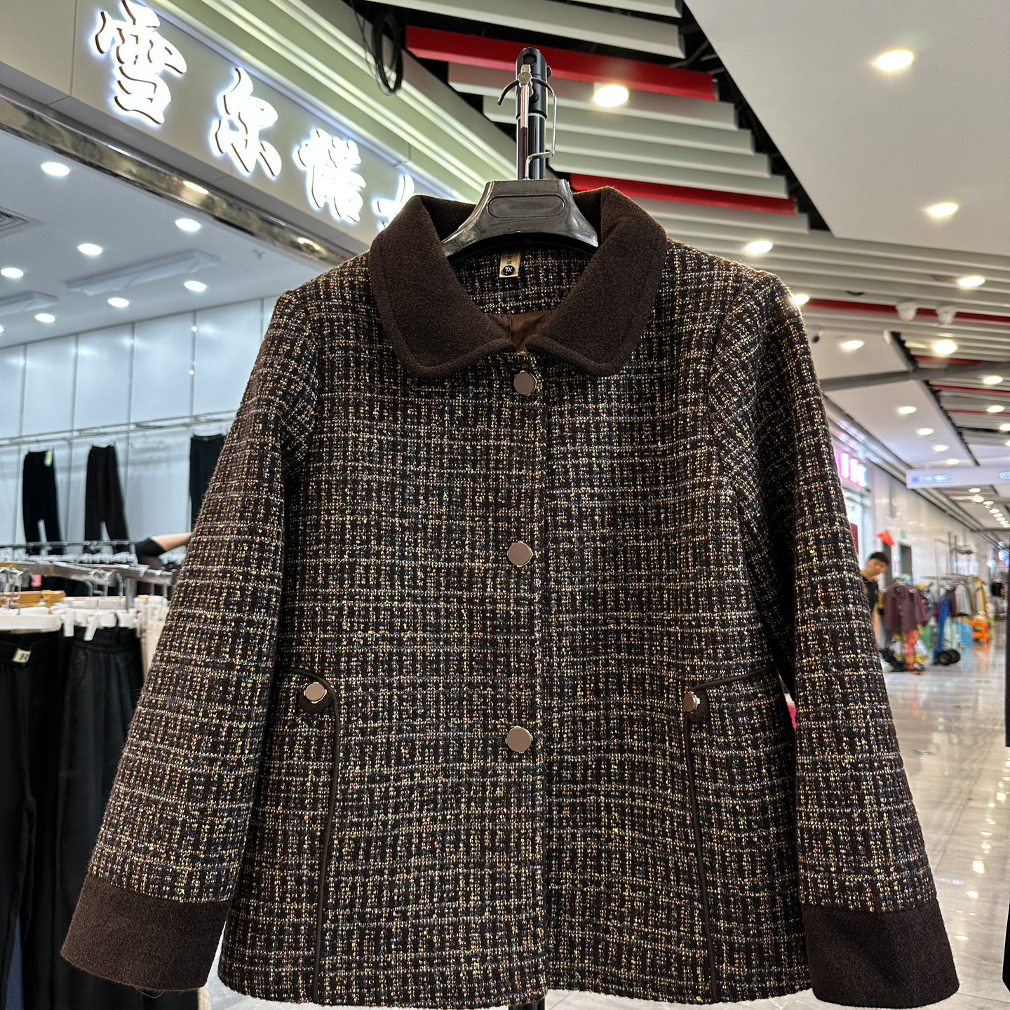 妈妈装小香风毛呢短款外套秋装冬装新款洋气高贵小个子中老年大衣