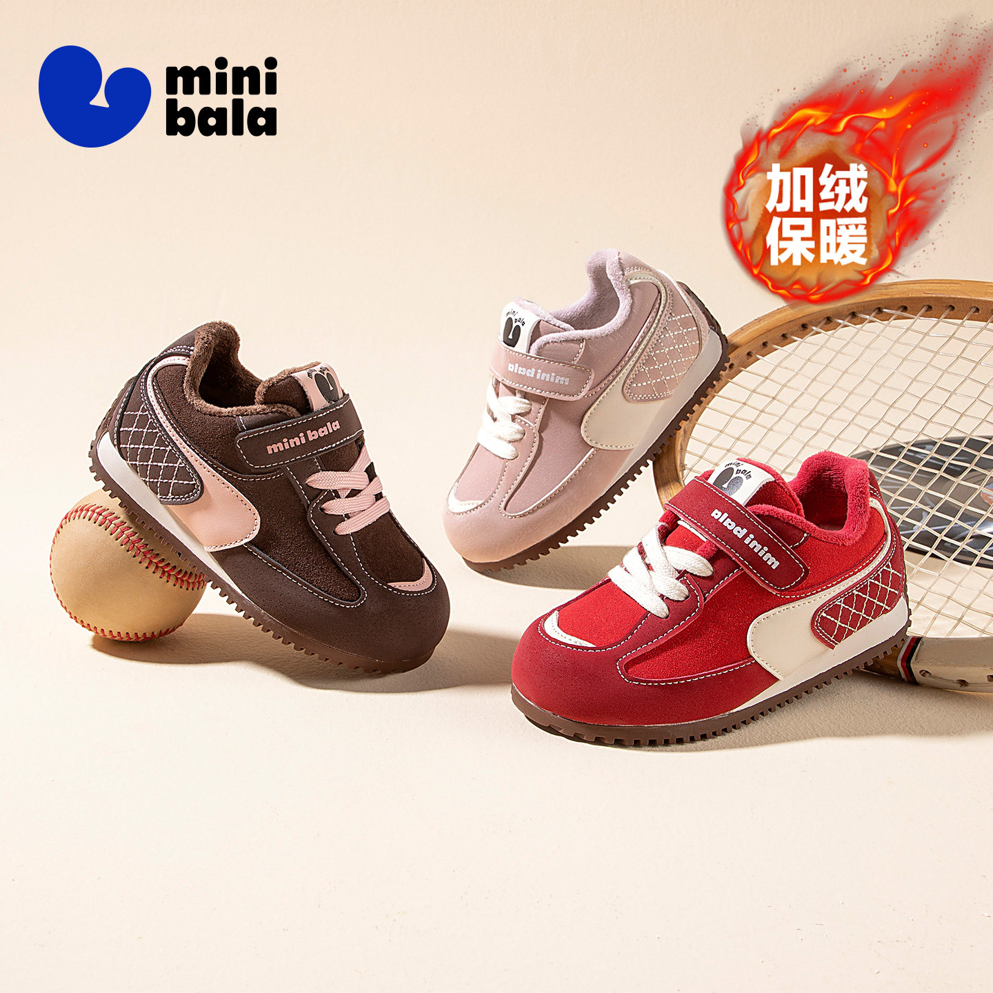 迷你巴拉冬季加绒保暖男童休闲鞋中小童棉鞋女童德训鞋儿童运动鞋