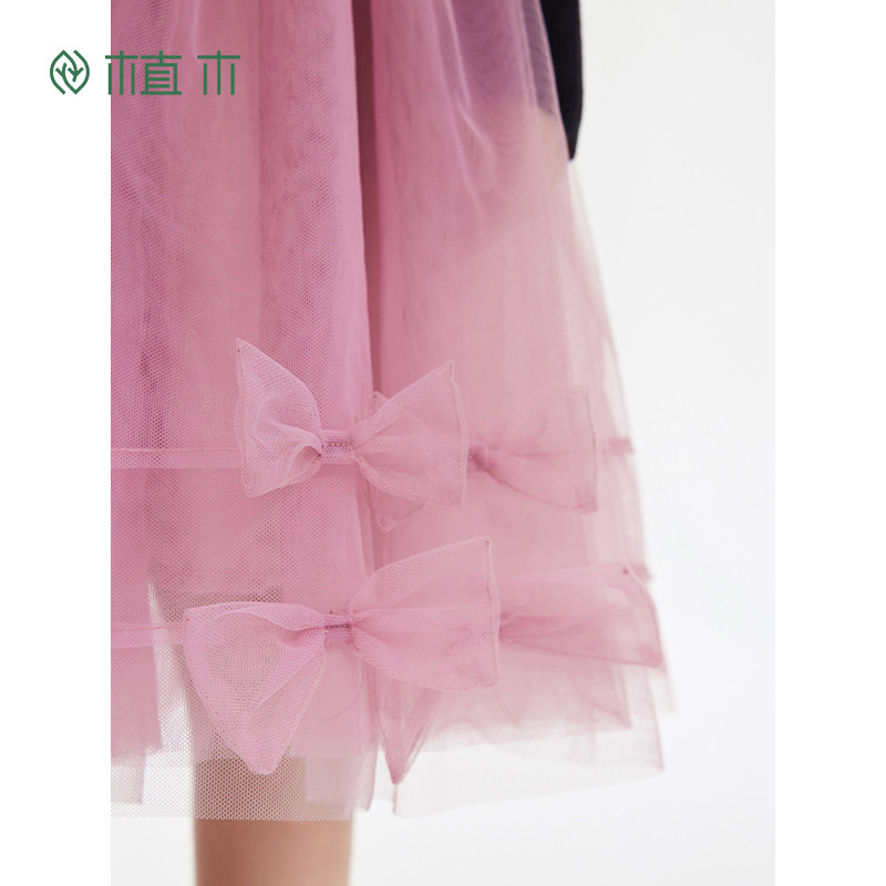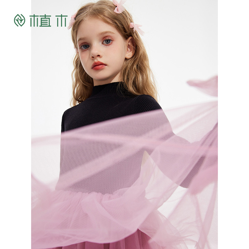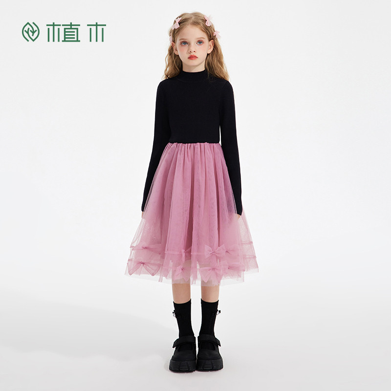 311线报网描述:女童长袖针织毛衣拼接纱蝴蝶结衣裙