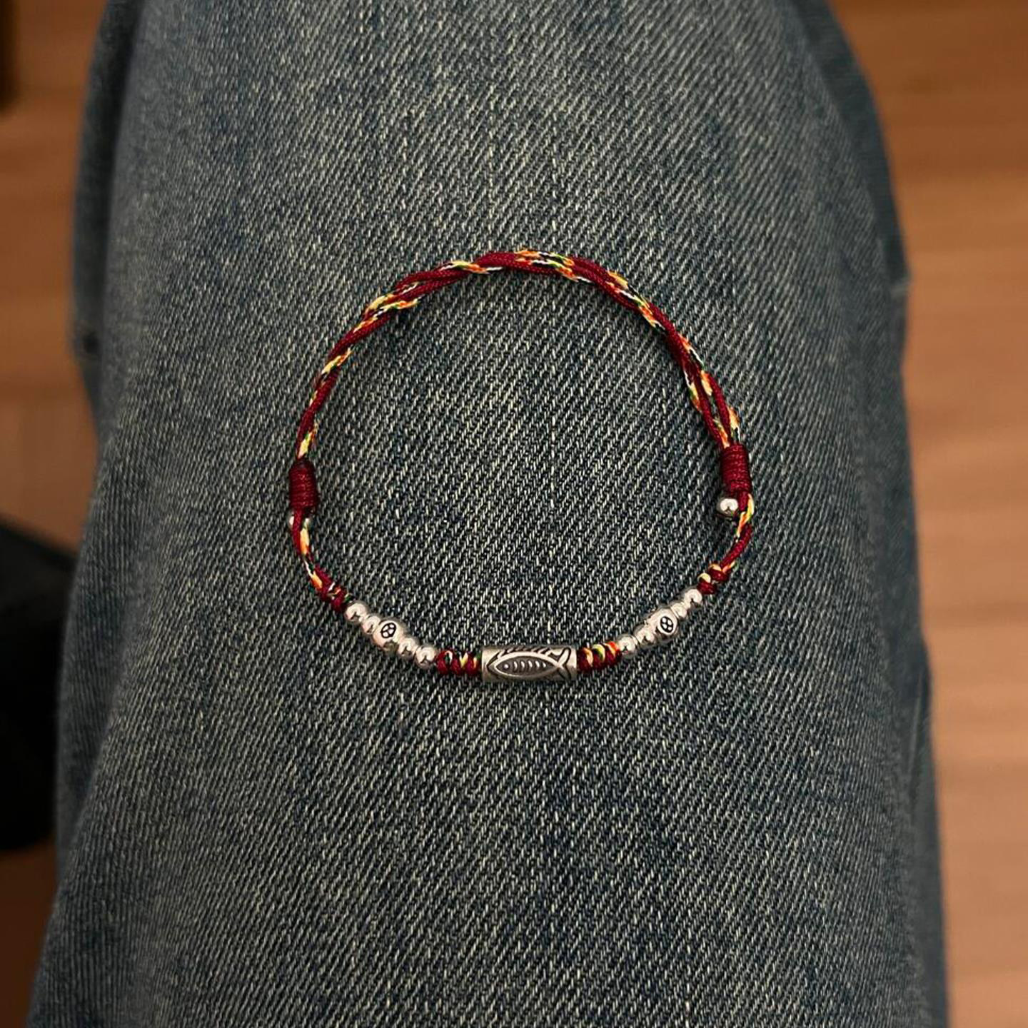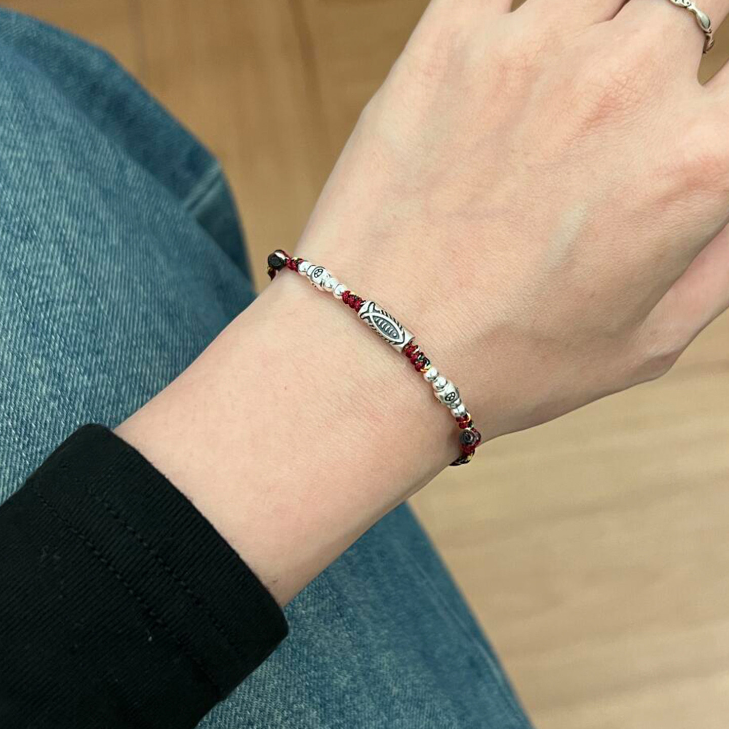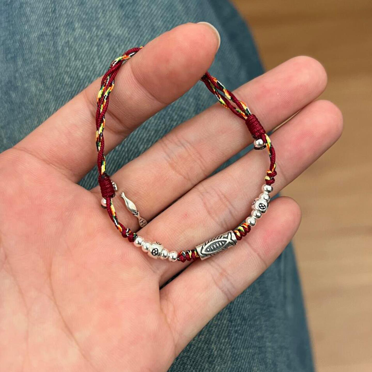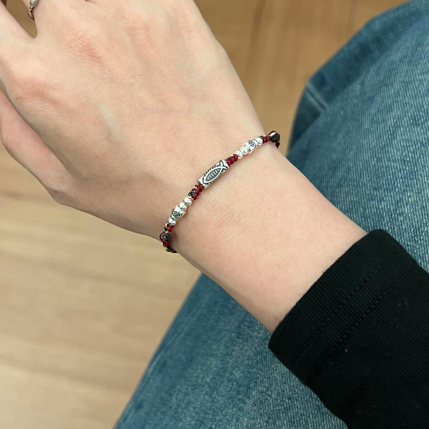 S925纯银金榜题名上岸锦鲤串珠红绳手链女款轻奢小众精致编织手绳