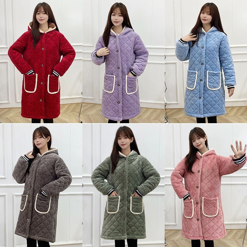 新款冬天罩衣女冬季加绒加厚外穿女款大码中长款厨房保暖外套棉服