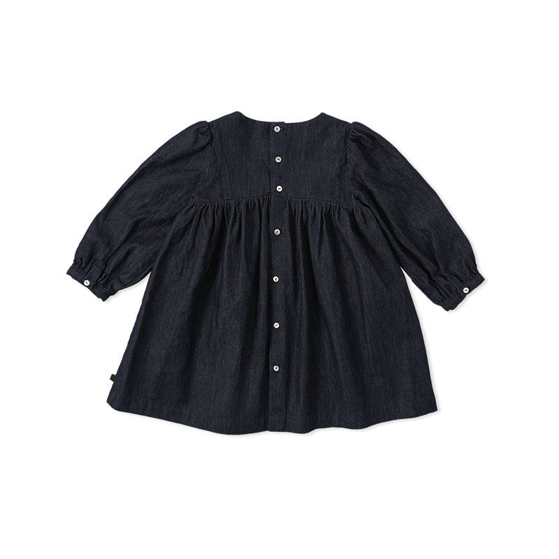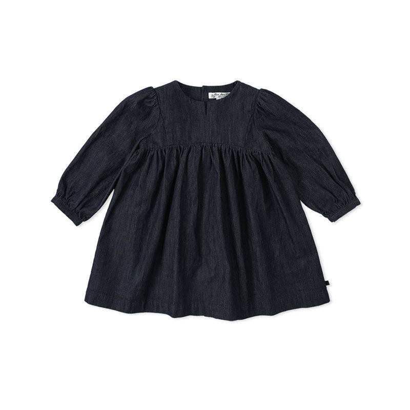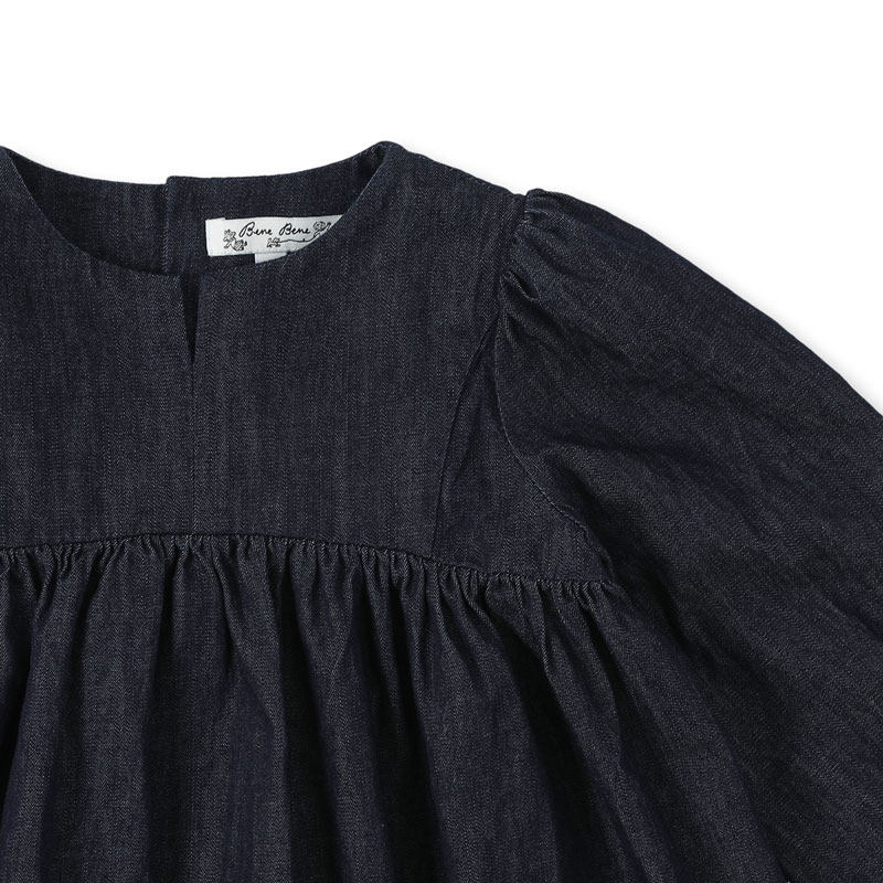 benebene纯棉牛仔长袖连衣裙女童新生婴儿秋冬款小众设计A字裙子