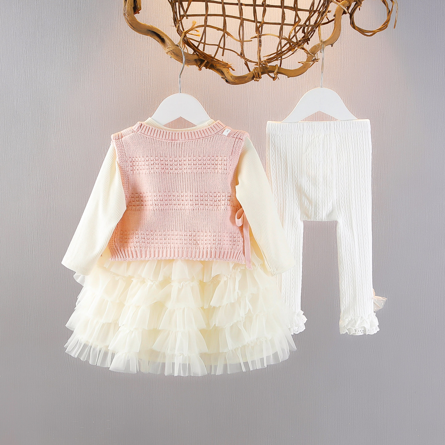 女童连衣裙套装2026春装新款宝宝公主裙周岁礼服春秋儿童背心裙子