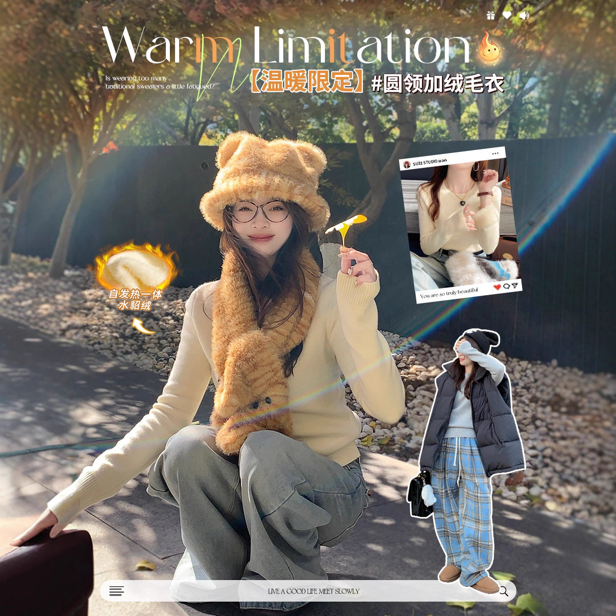 苏三三低领加绒毛衣女款2025新款冬季加厚内搭打底衫秋冬针织上衣