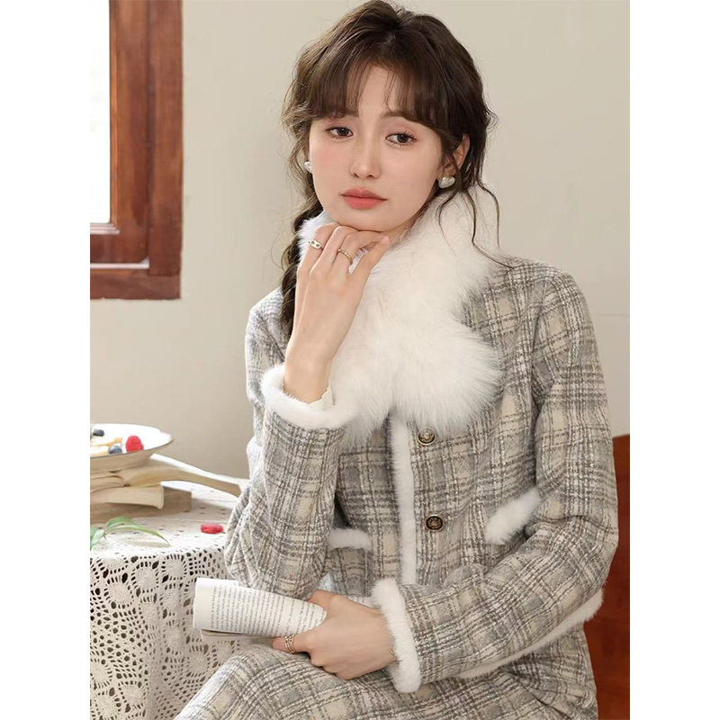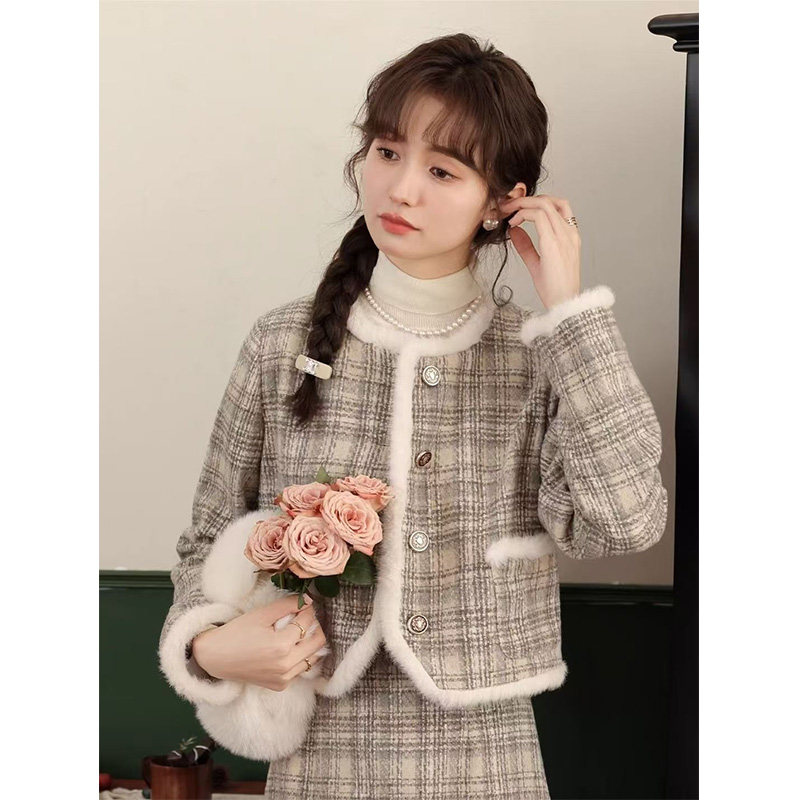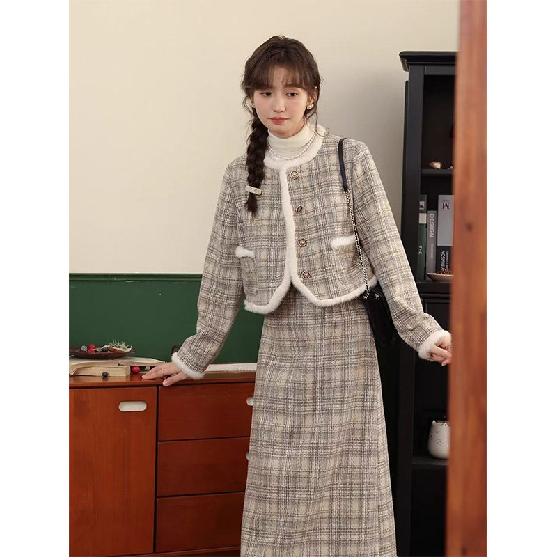 小香风夹棉加厚外套半身长裙两件套秋冬装穿搭新款时尚穿搭套装女