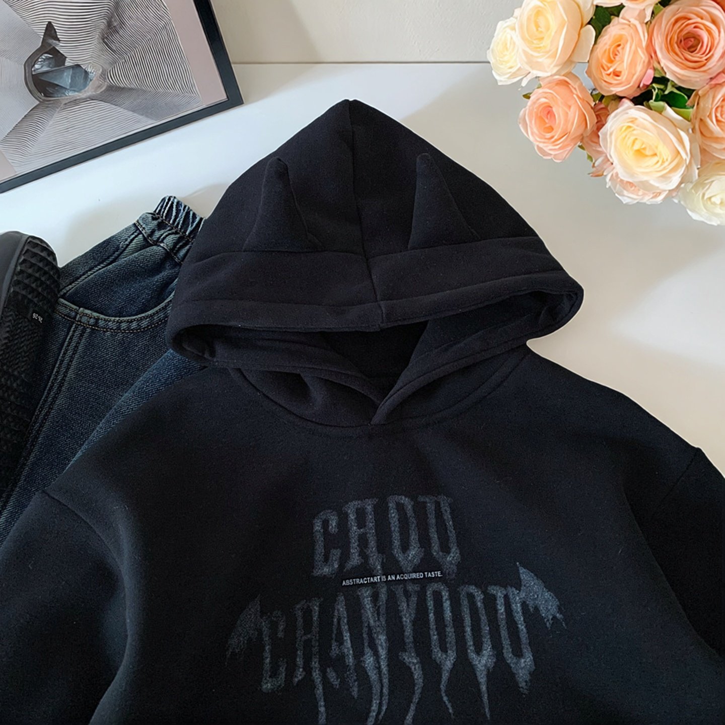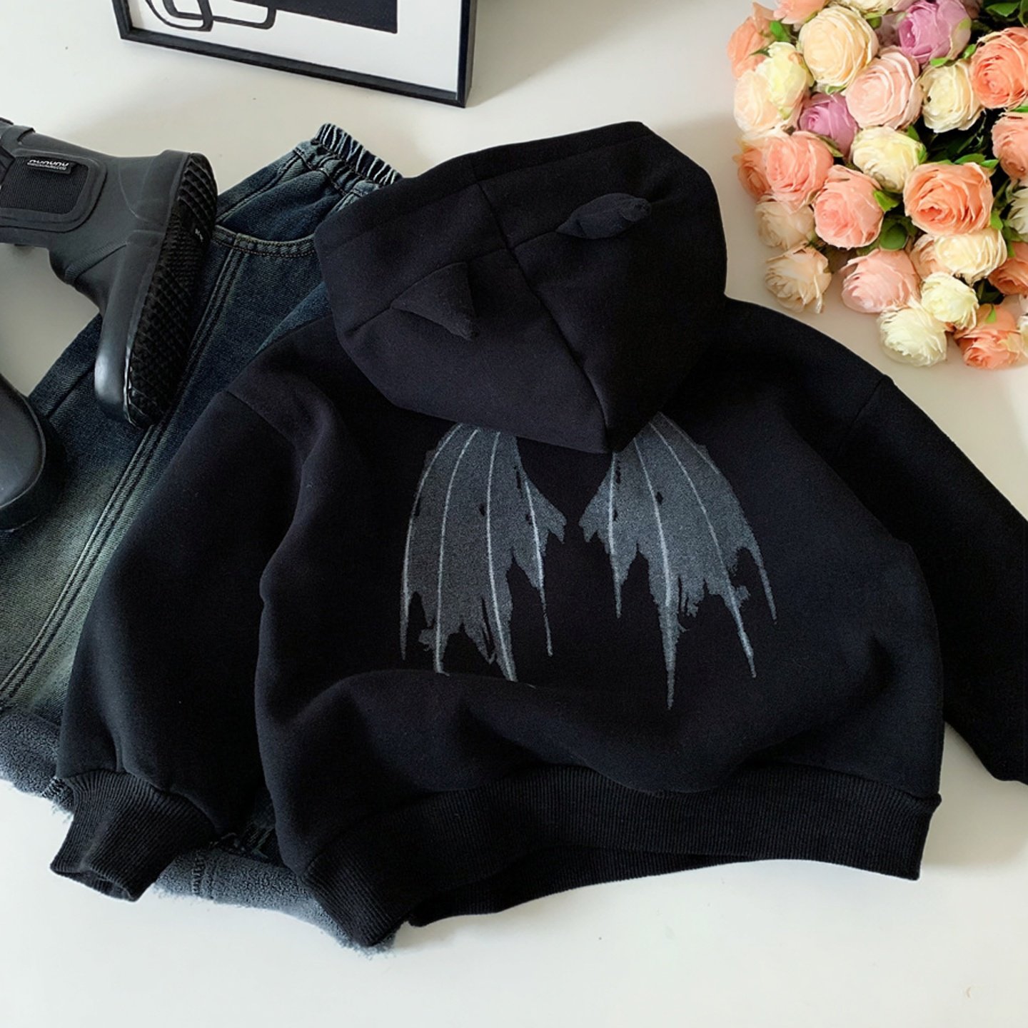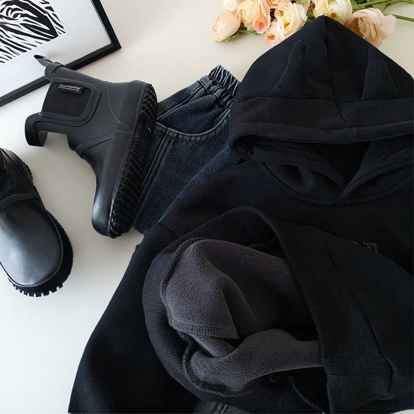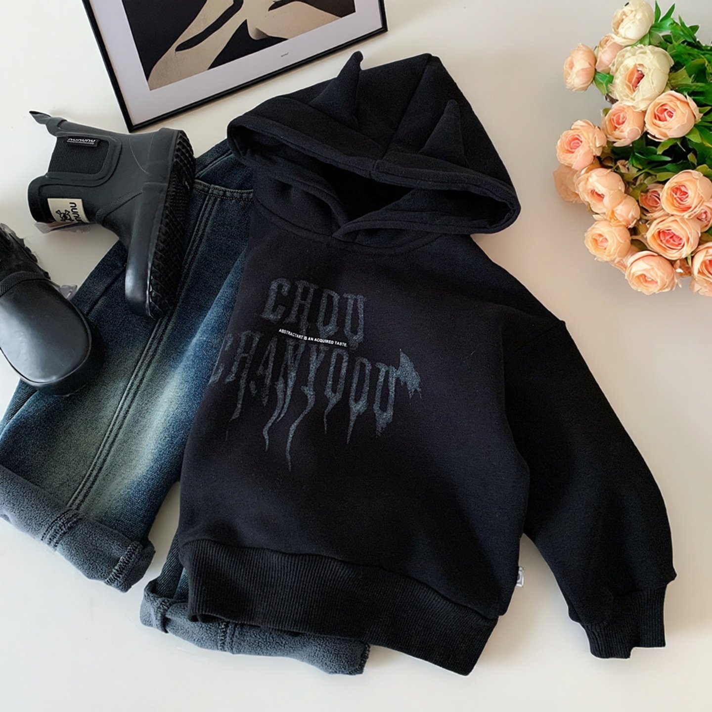 超好看男童卫衣加绒2025新款帅气时髦冬装加厚黑色儿童连帽一体绒