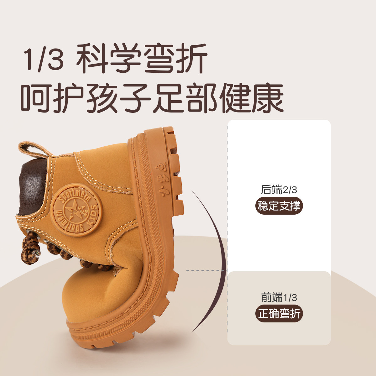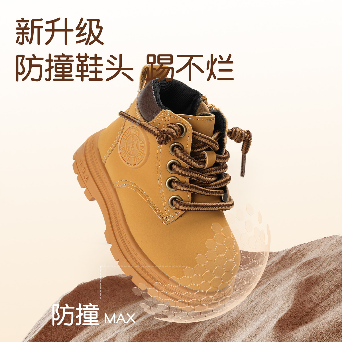 小步点宝宝靴子冬季小童棉鞋男童鞋子皮靴儿童加绒棉靴女童马丁靴