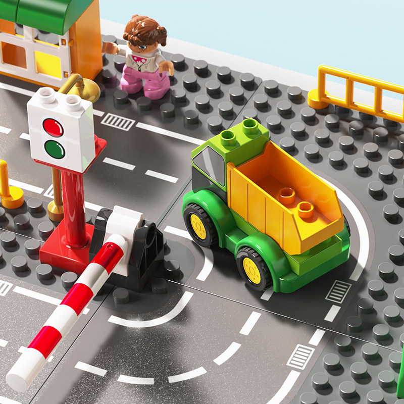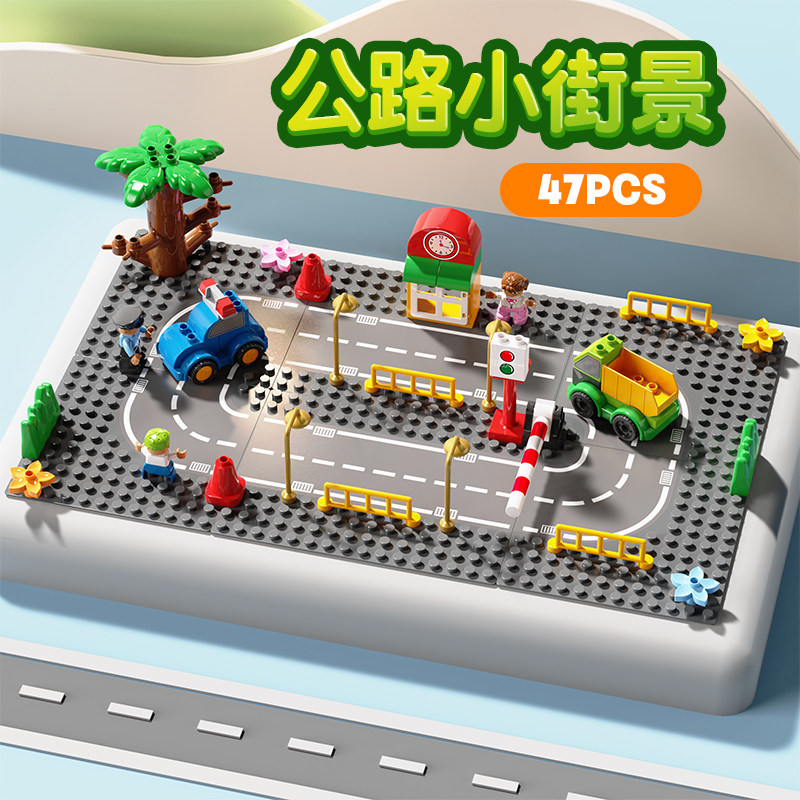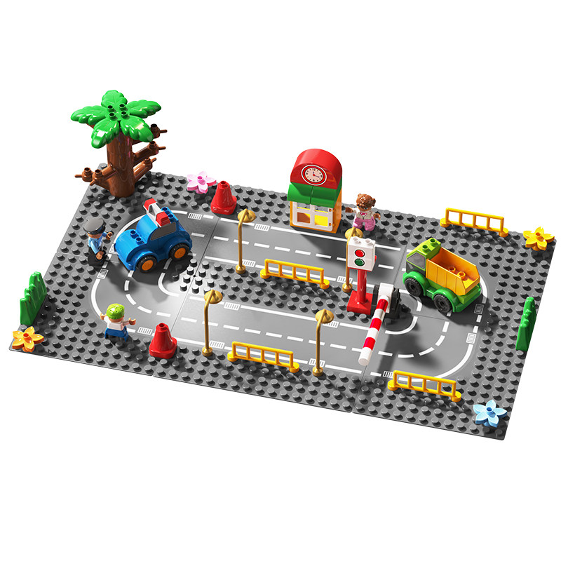 积木底板大颗粒积木地板通用配件桌面底汽车弯道场景直道公路底板