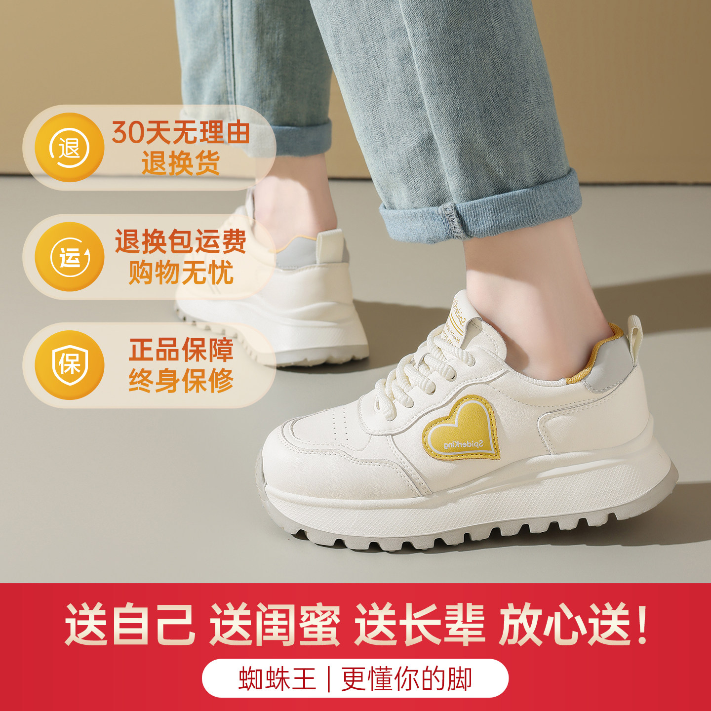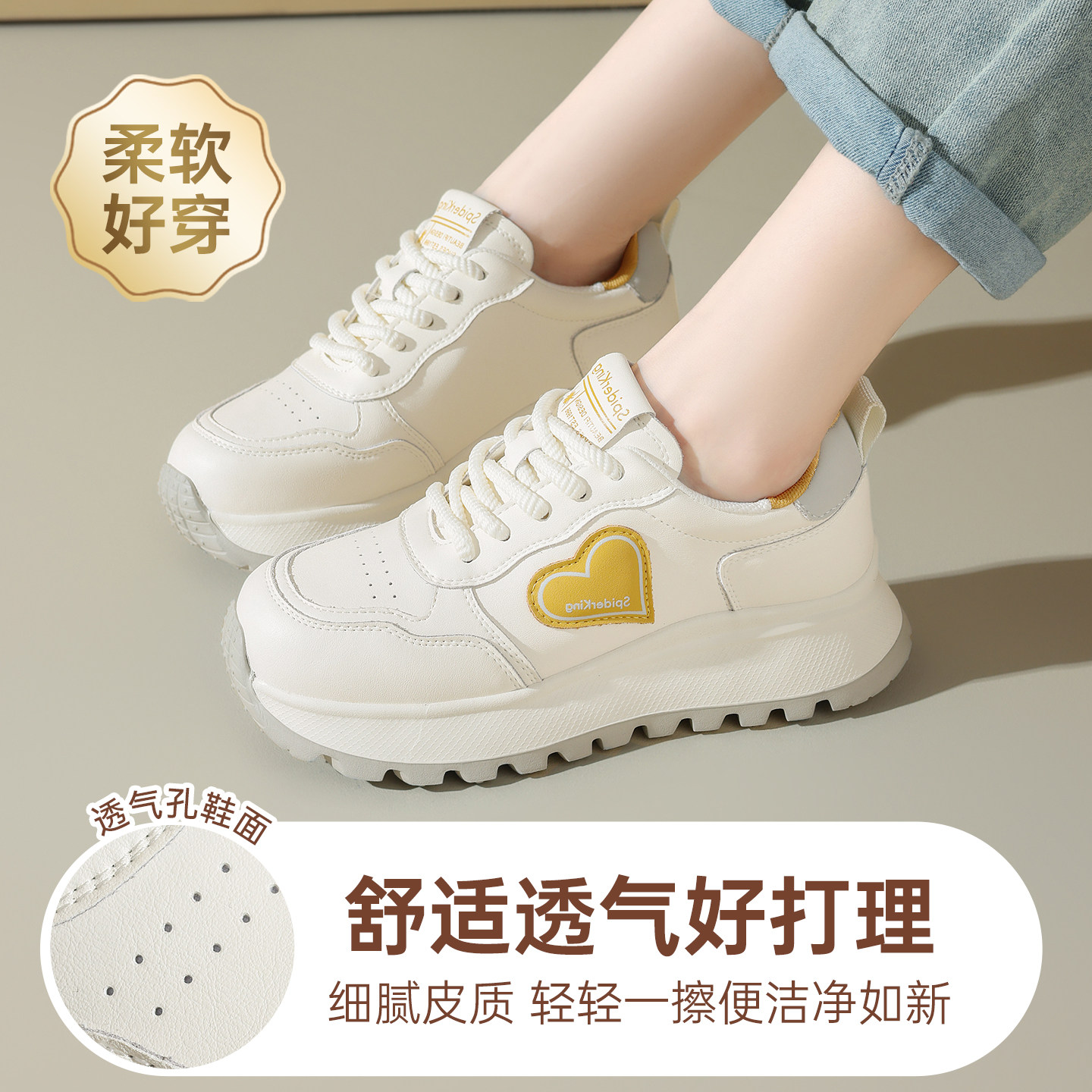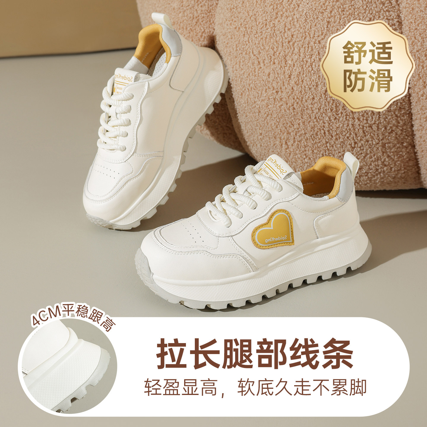 蜘蛛王女鞋2025秋季新款真皮松糕底坡跟厚底增高品牌运动休闲鞋女