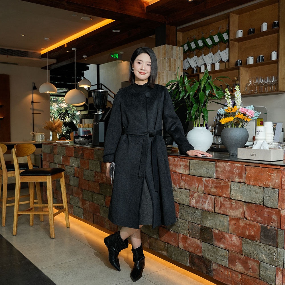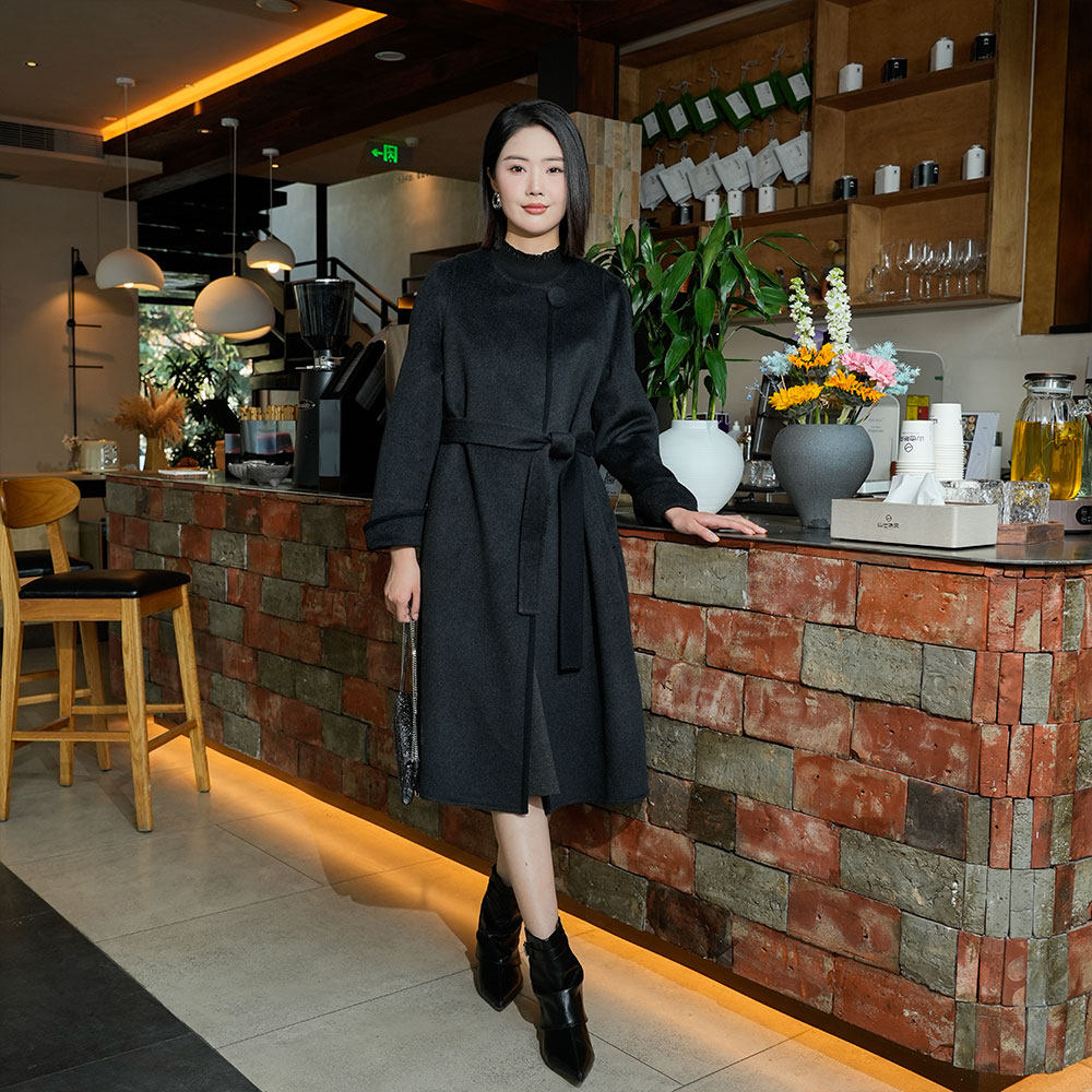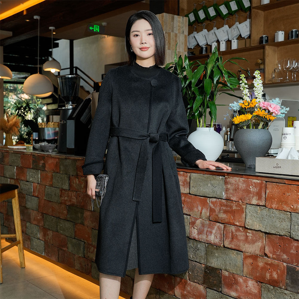 2025冬装新款高级感极简风双面呢羊毛绒大衣女中长款圆领显瘦外套