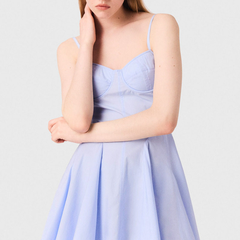 311线报网描述:法式可调节肩带短裙 时尚褶皱边缘裙摆