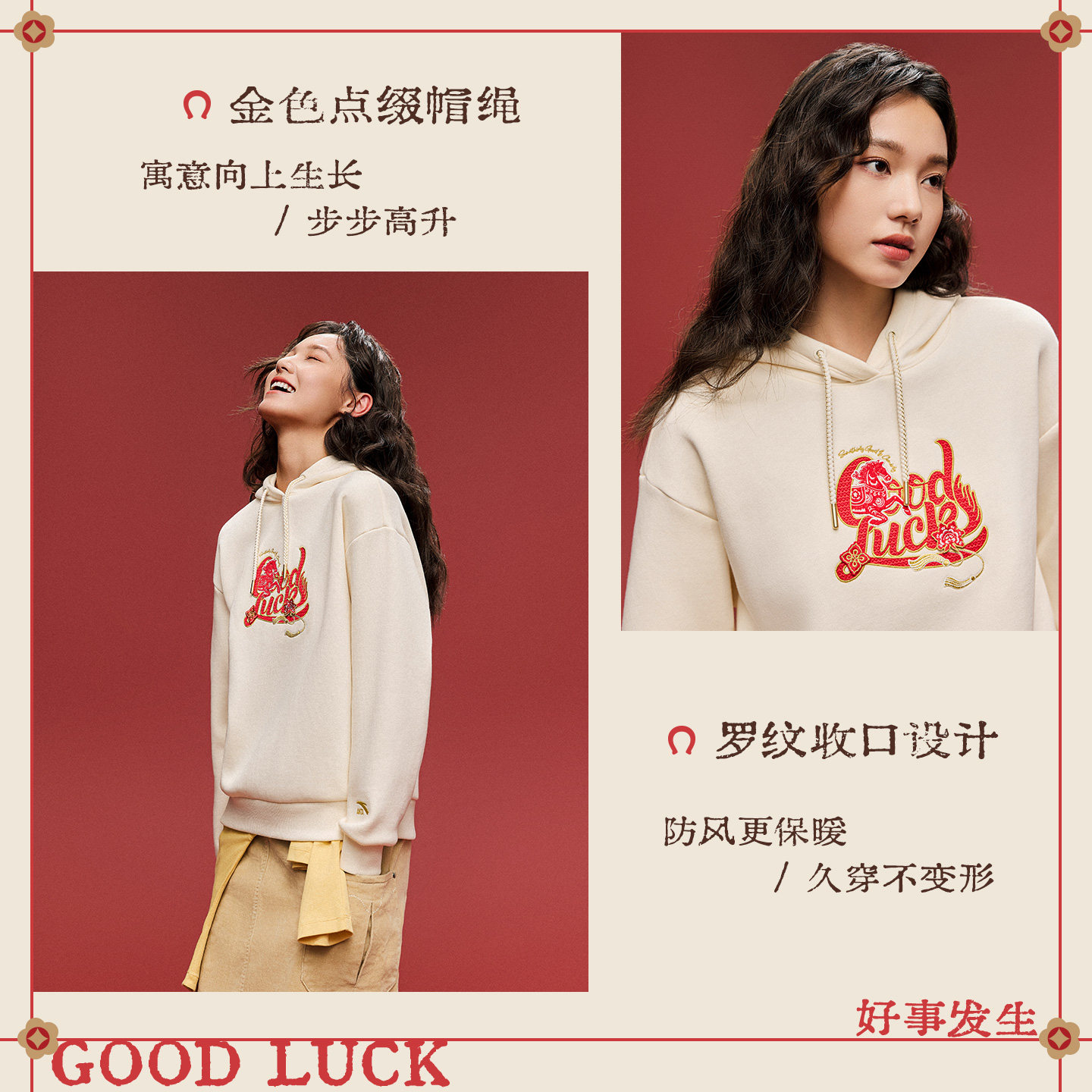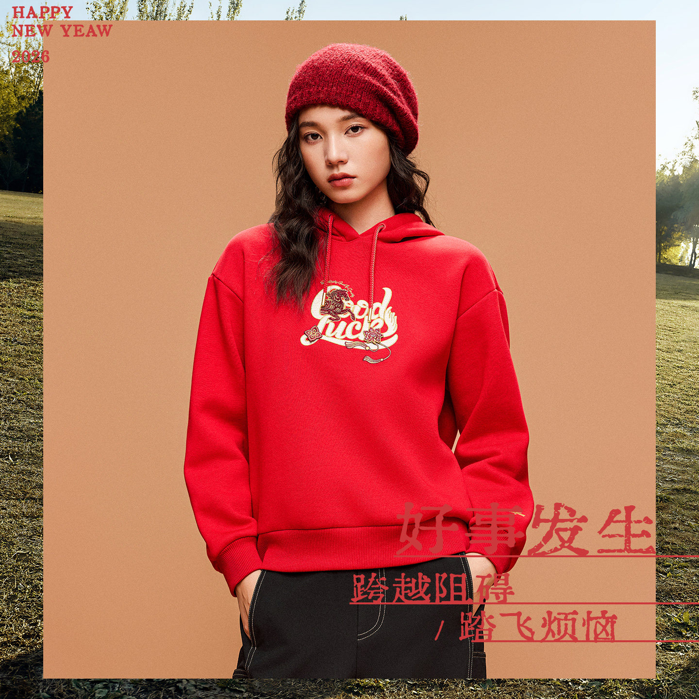 安踏好事发生丨马年新年鸿运加绒卫衣女红色套头衫上衣162618706