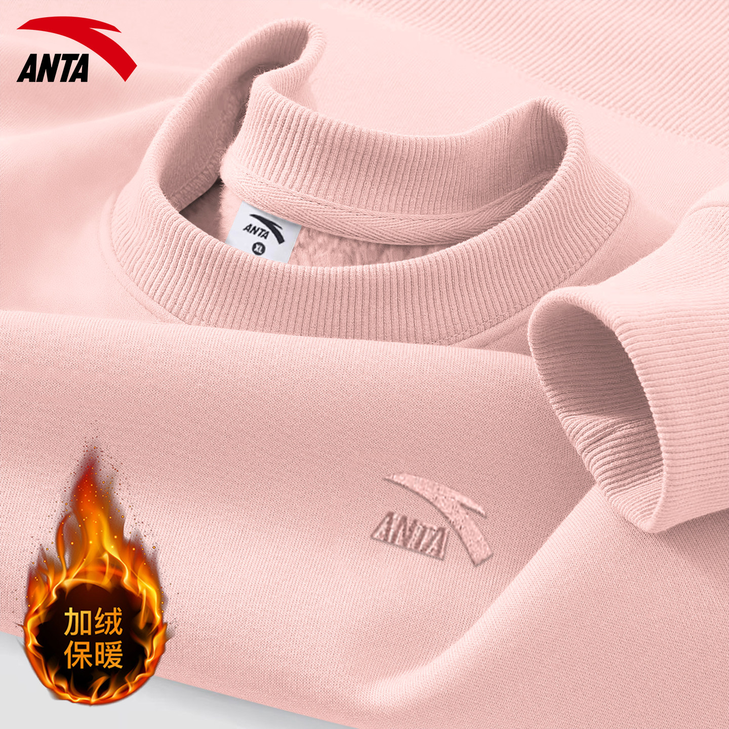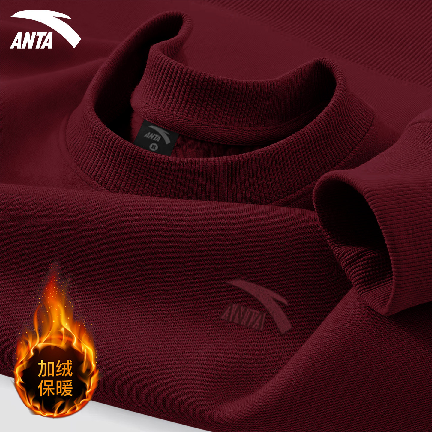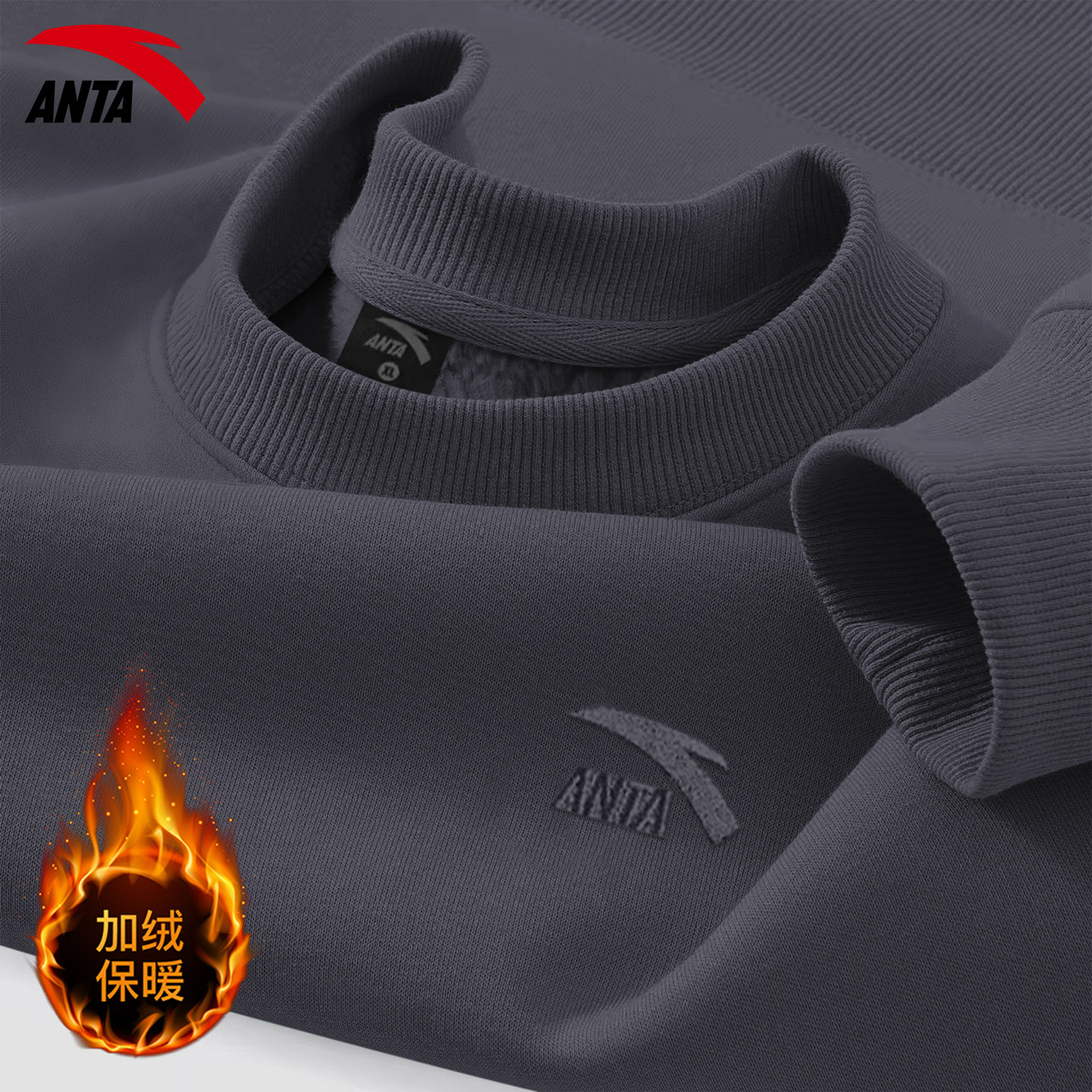安踏卫衣男加绒冬季新款青少年加厚宽松男款上衣官方正品运动长袖