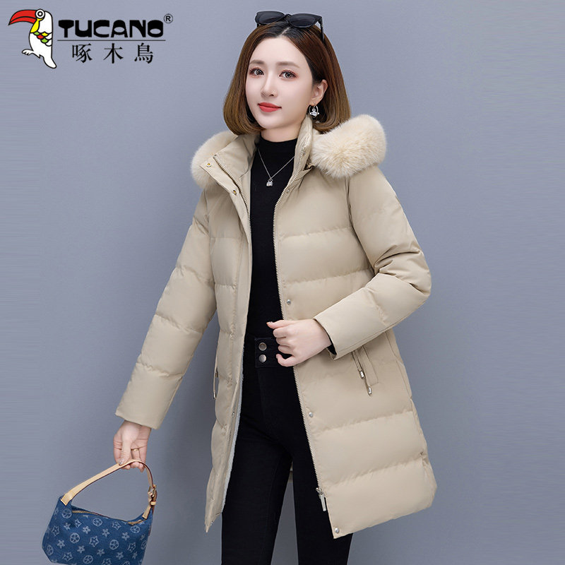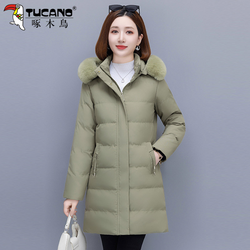 啄木鸟加绒棉衣女款2025新款冬季羽绒棉服中长款妈妈洋气加厚棉袄