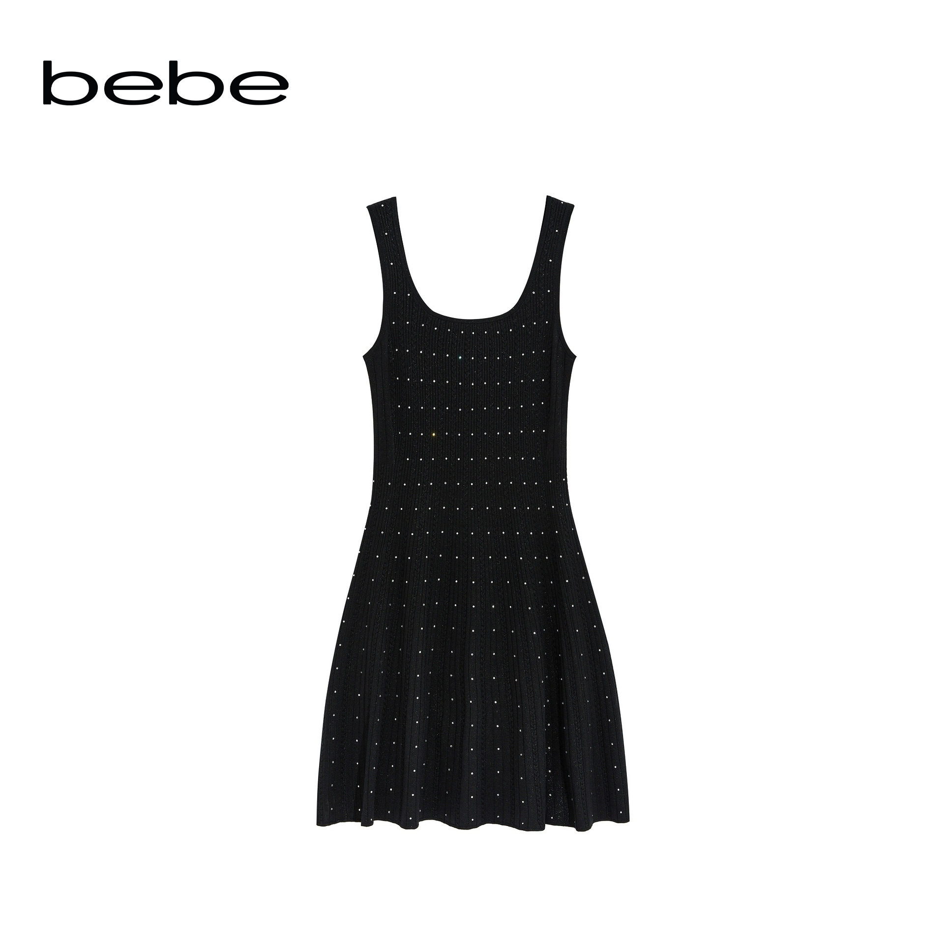 bebe2026春季新款女士千金风经典波点设计吊带针织连衣裙130901