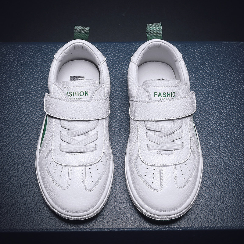 儿童真皮小白鞋男童鞋子春秋软底头层牛皮男孩板鞋女童白色运动鞋