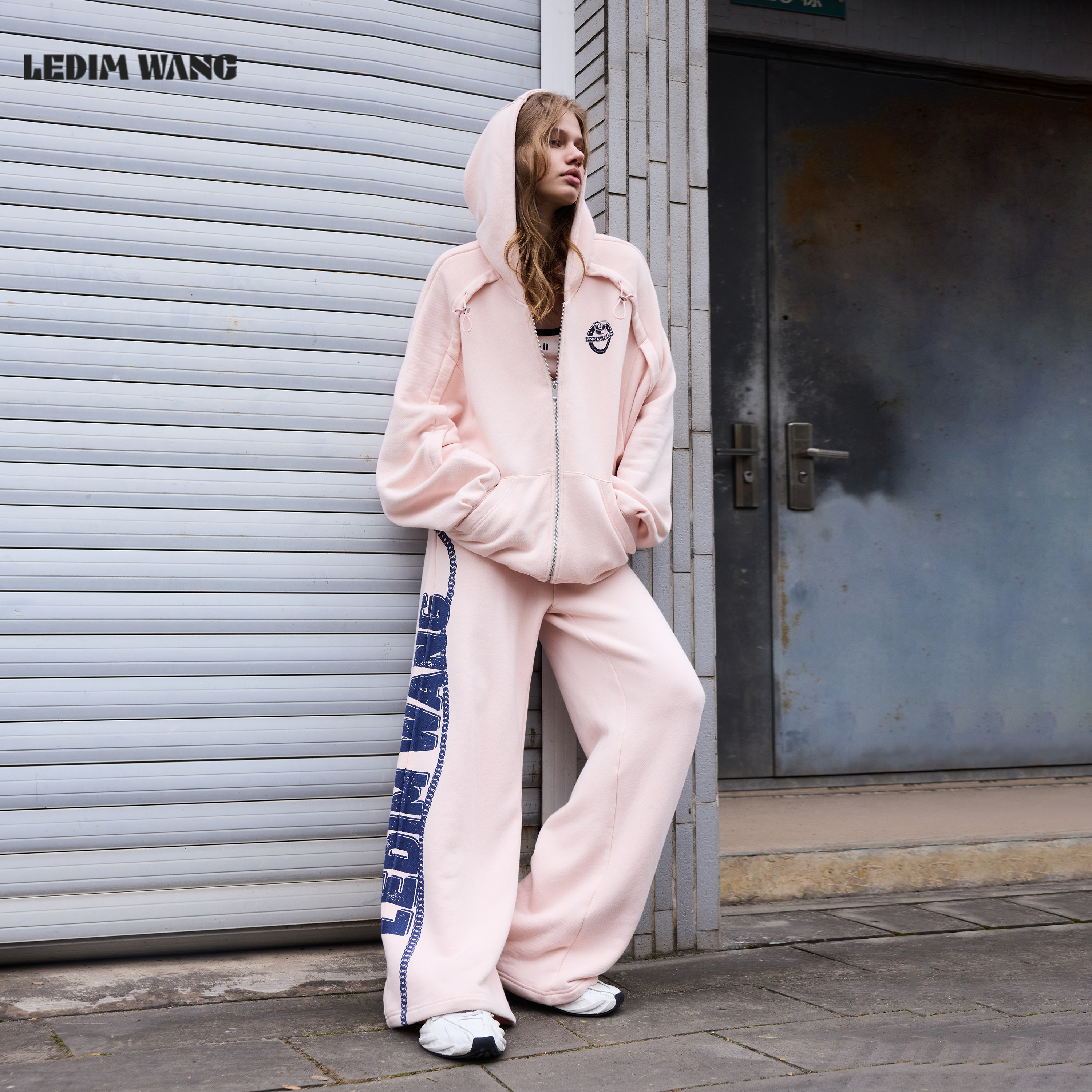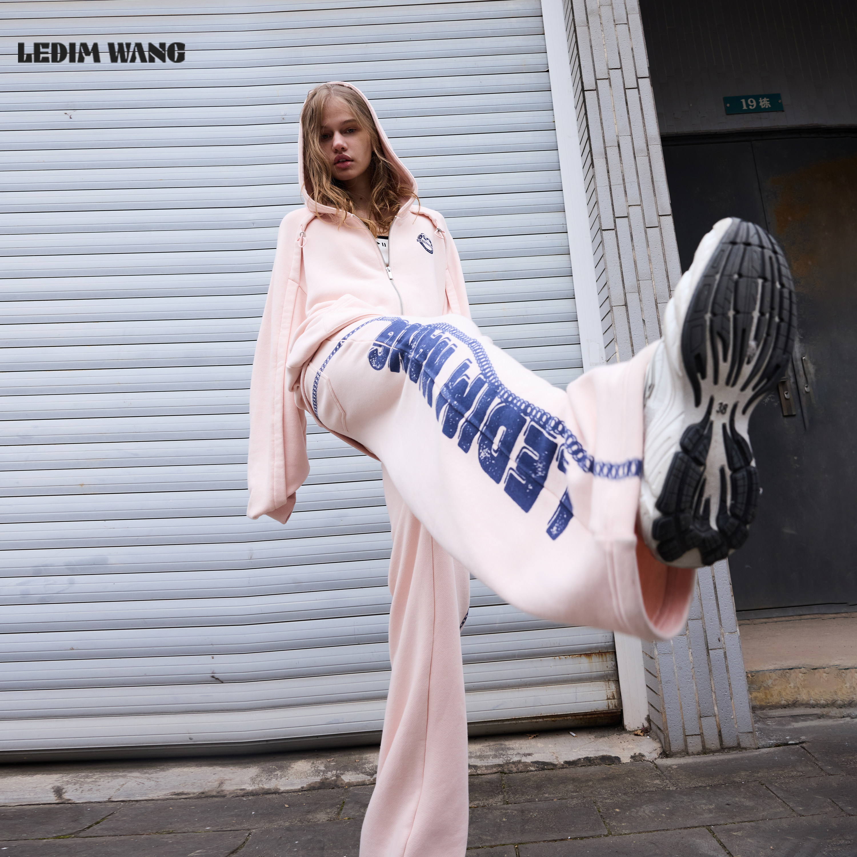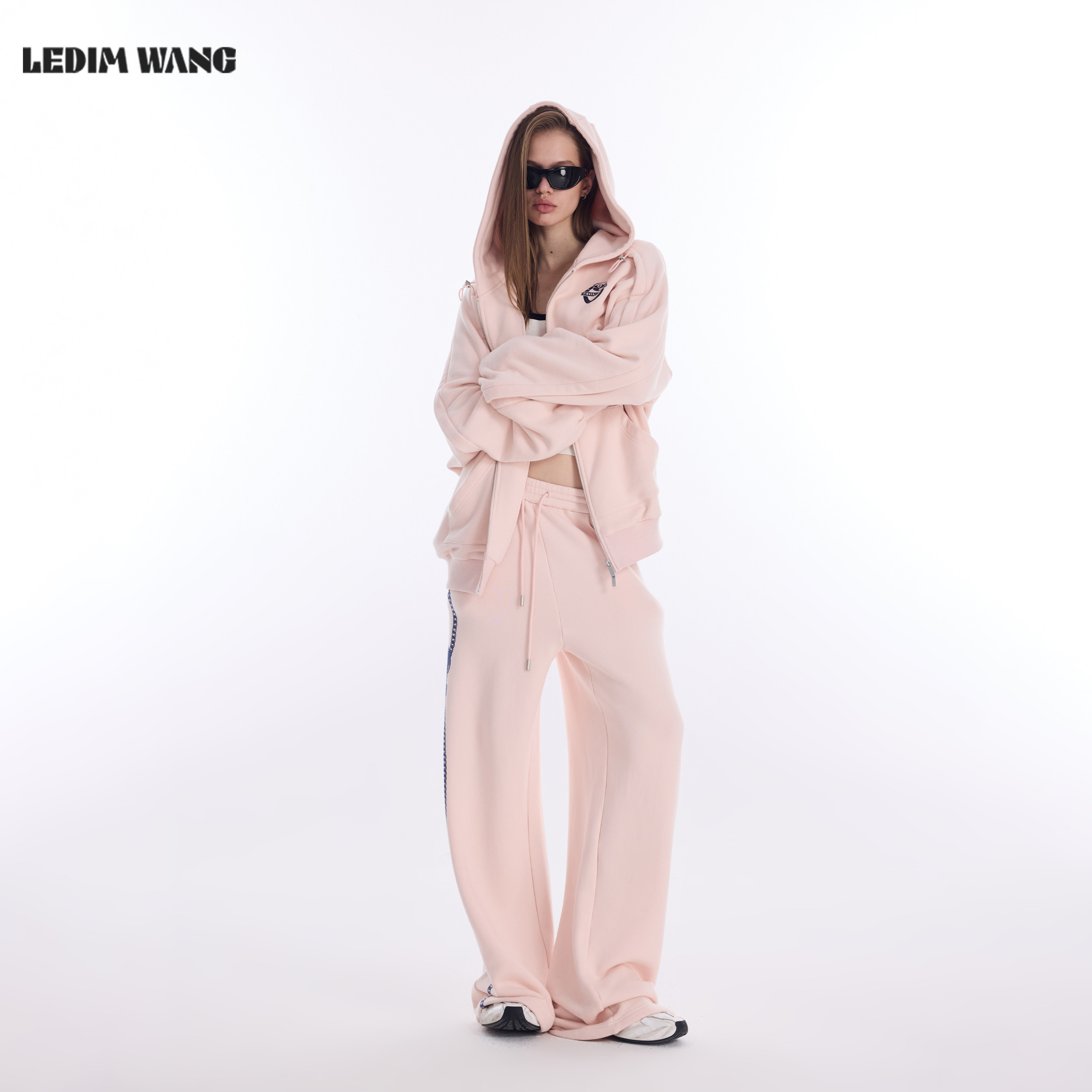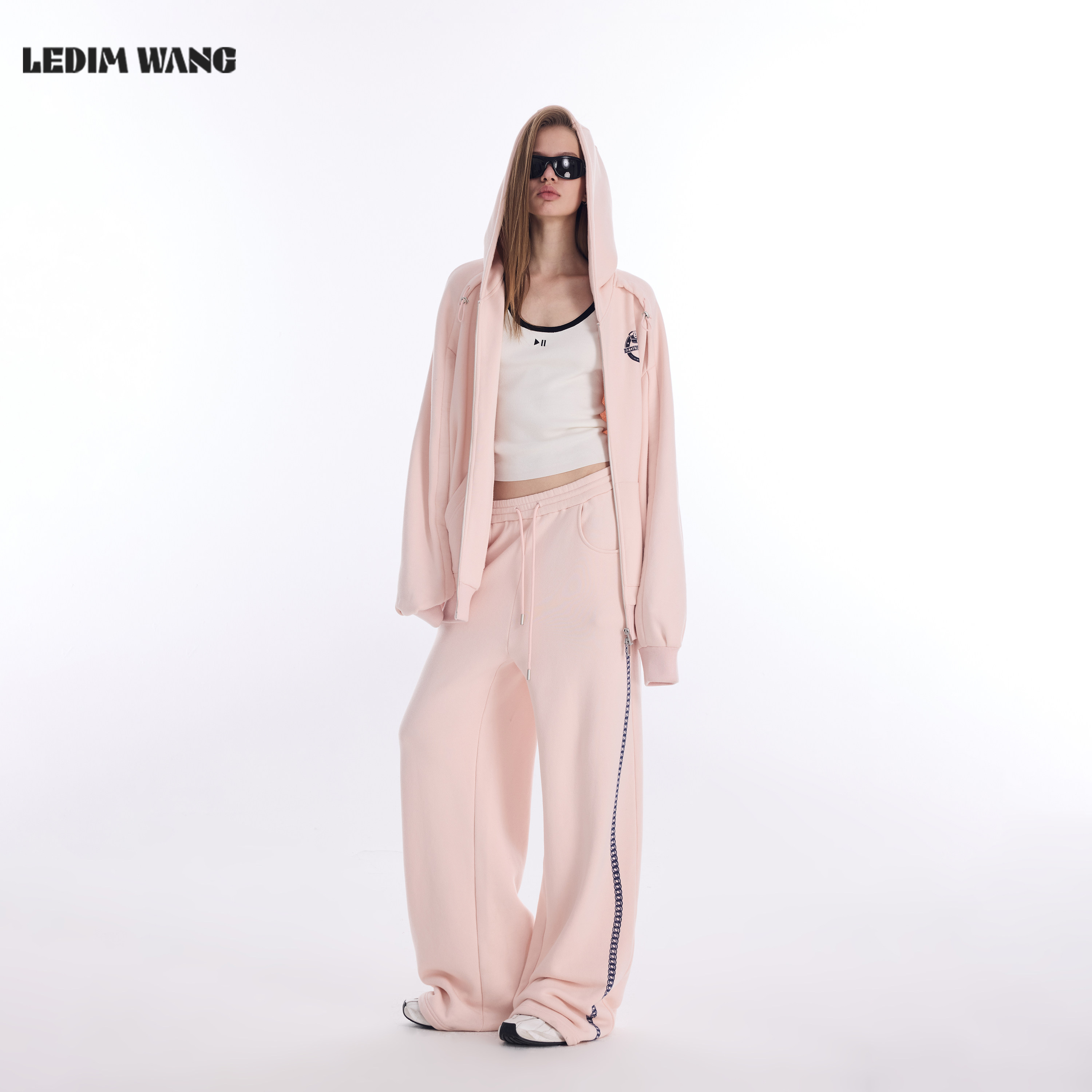 LEDIM WANG连帽开衫外套时尚套装女款2026春季新款粉色卫衣/卫裤