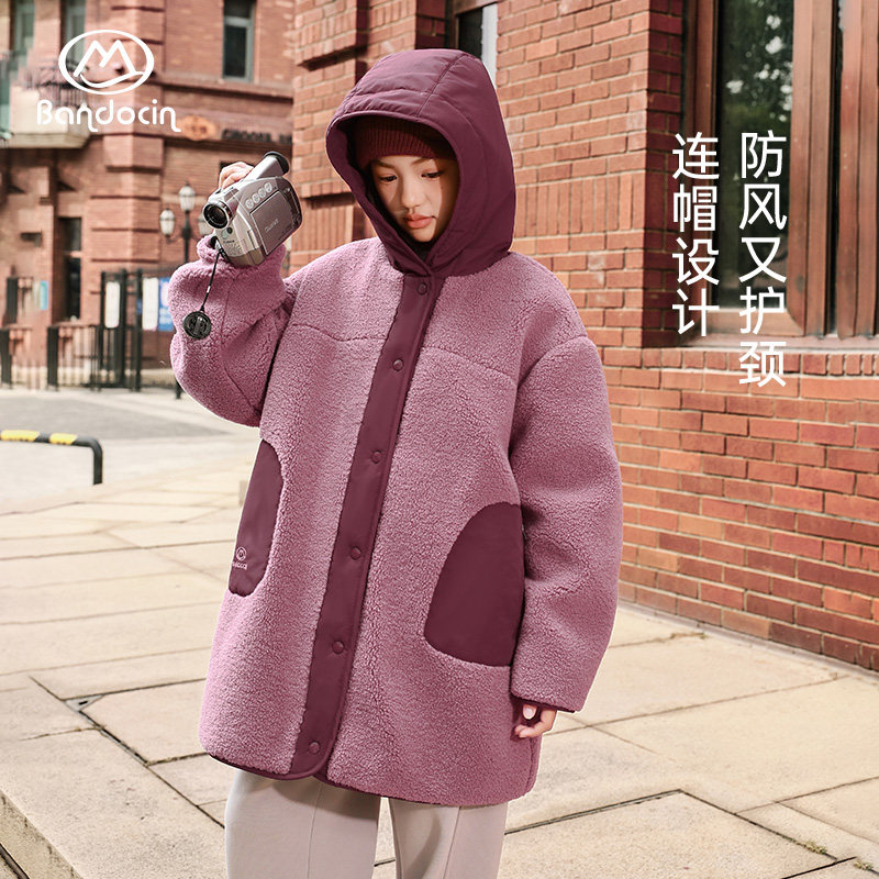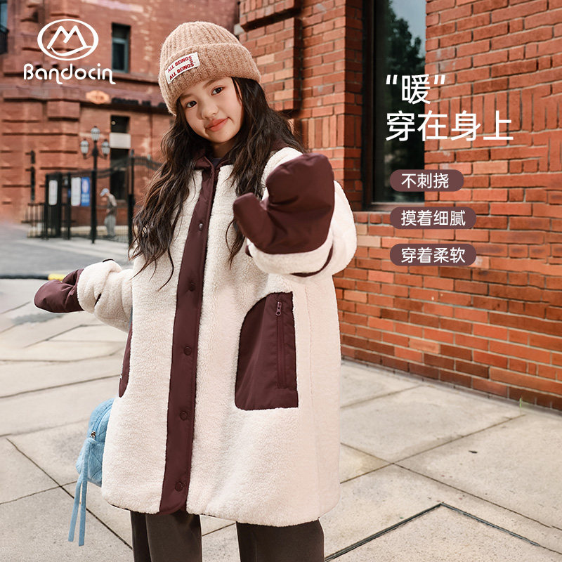 半度闲女童夹棉外套秋冬装加厚中大童洋气新款儿童冬季毛毛衣棉服