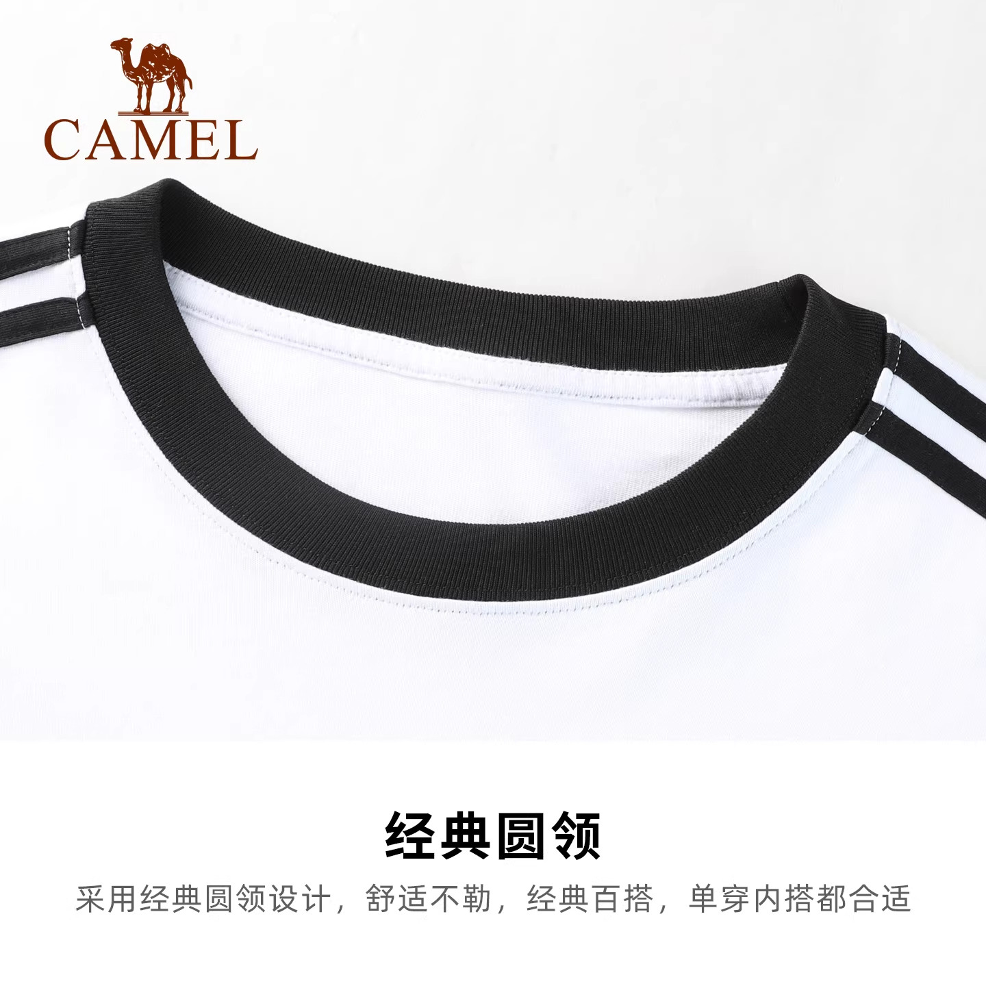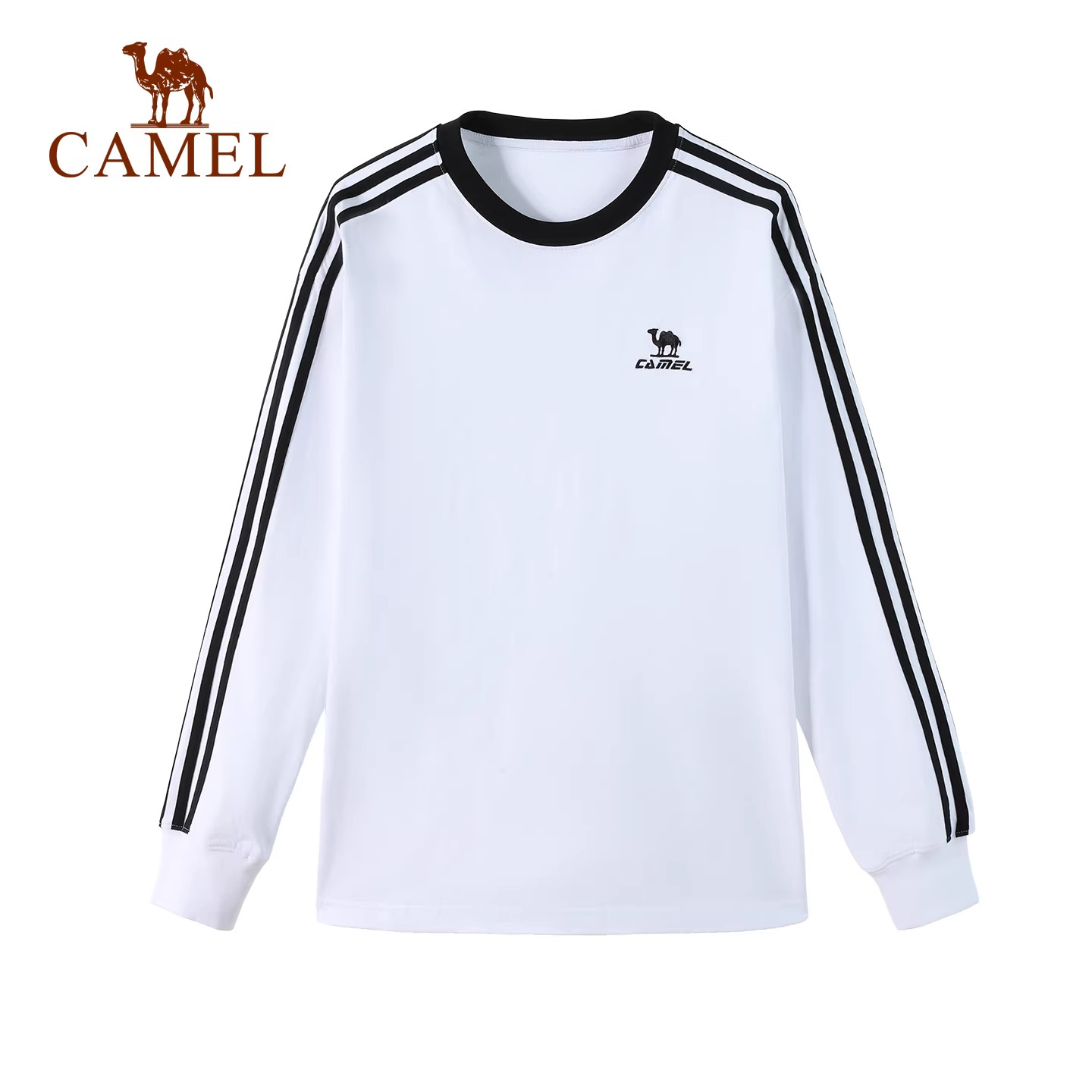 骆驼女装纯棉长袖2026春季新款圆领T恤户外休闲卫衣三条上衣男