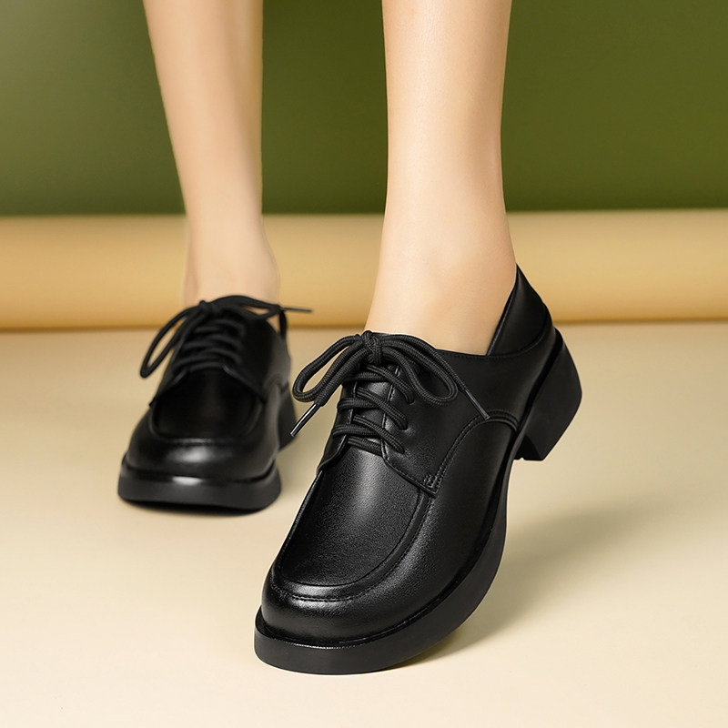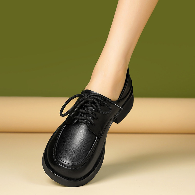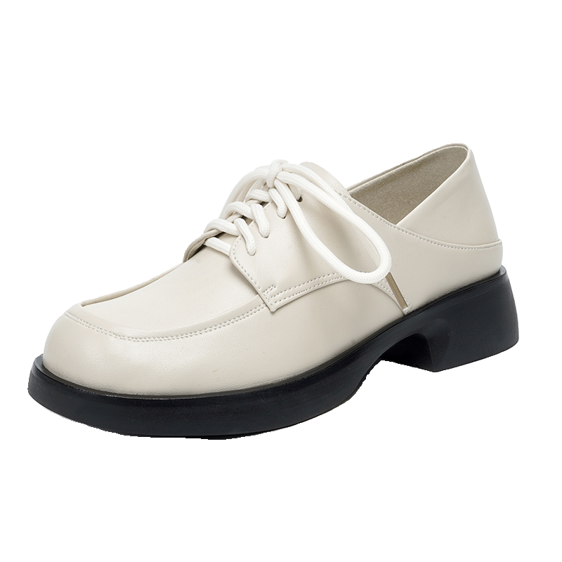 厚底小皮鞋女英伦风2026春秋季新款真皮粗跟系带白色女鞋乐福单鞋