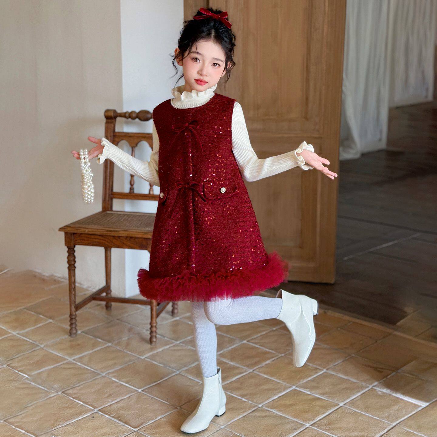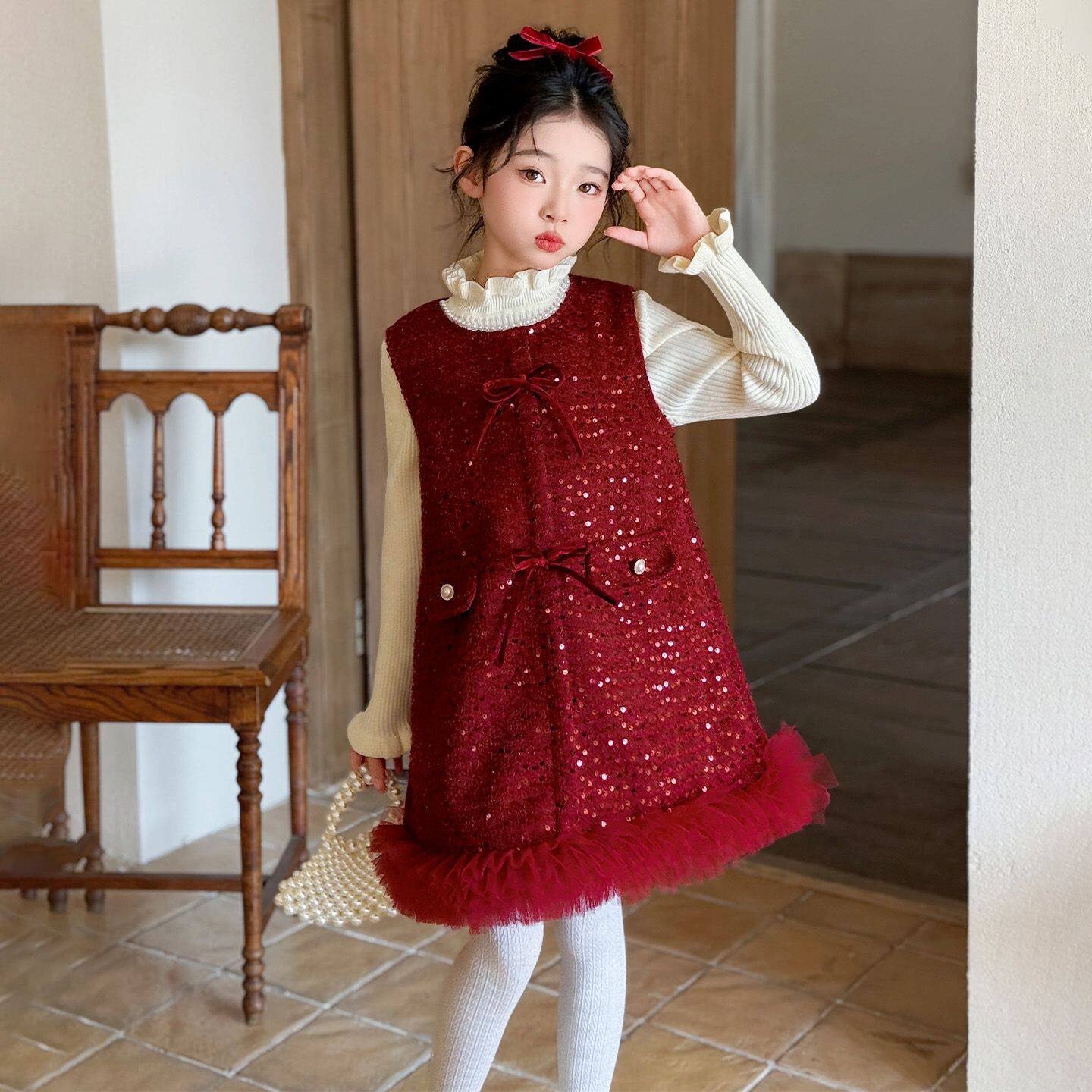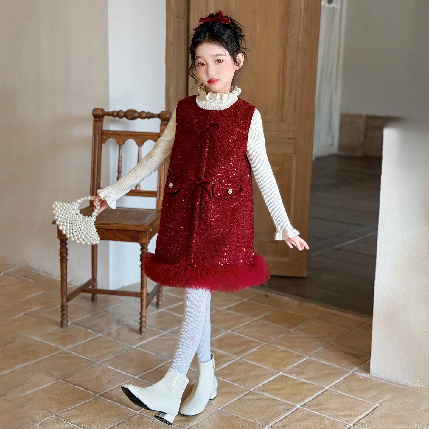 女童小香风加绒连衣裙秋冬2025新款儿童公主裙高级感洋气女孩冬裙