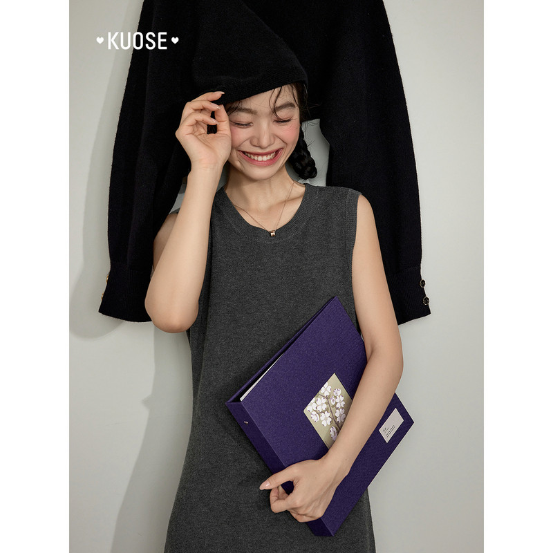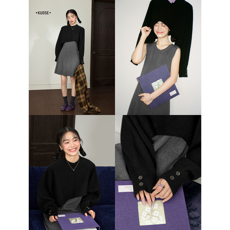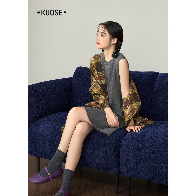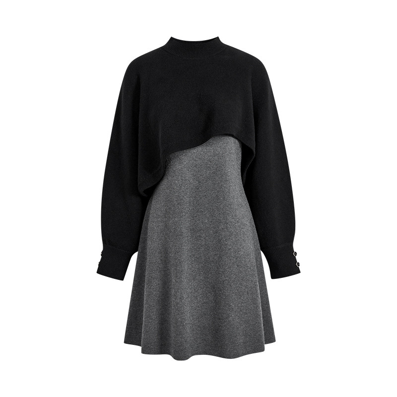 阔色灰色不规则收腰显瘦连衣裙女25秋冬新款针织披肩毛衣两件套装
