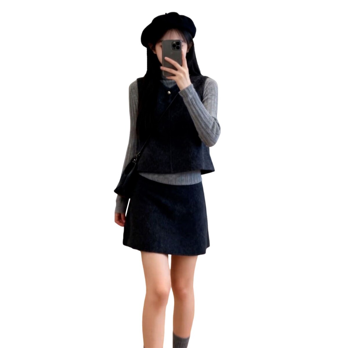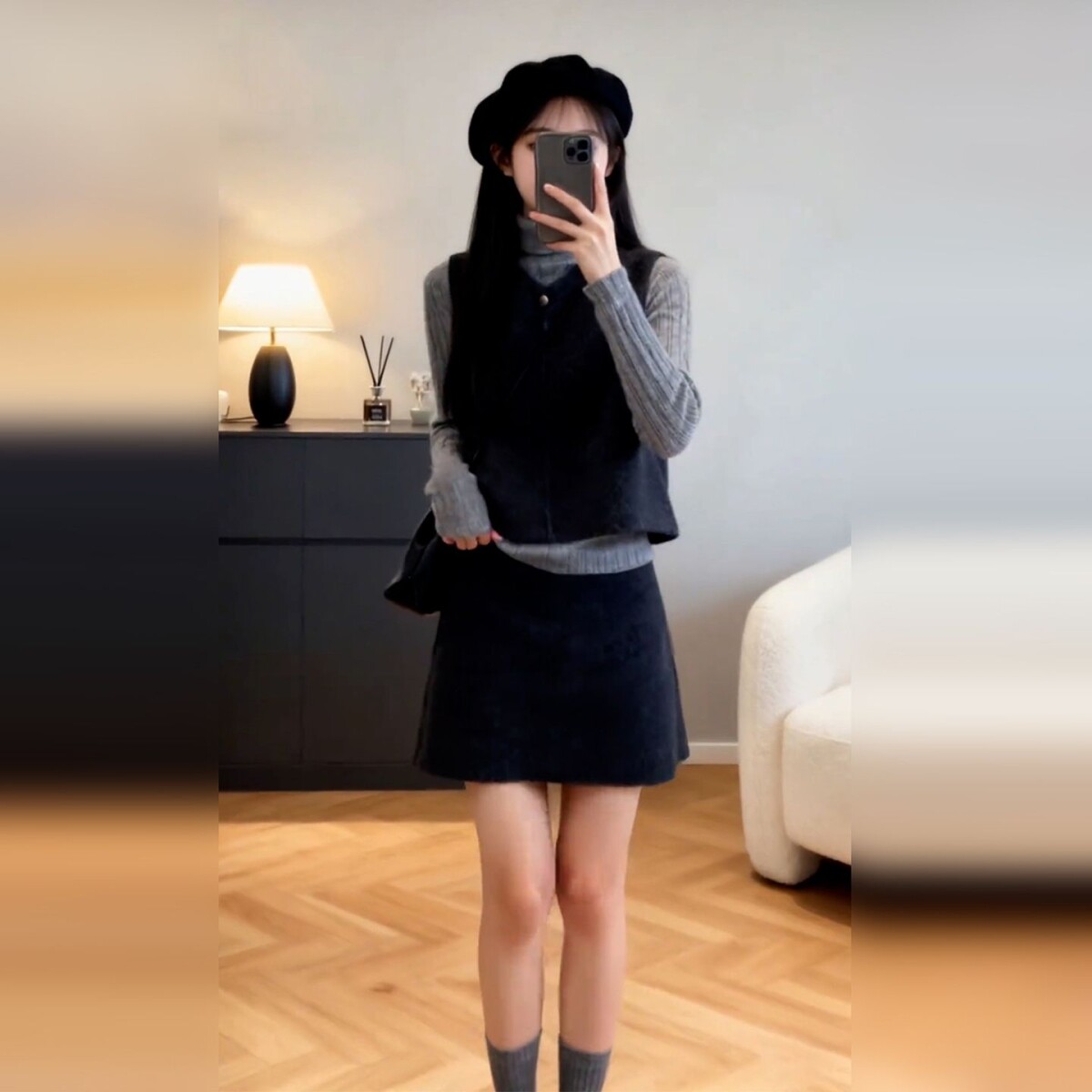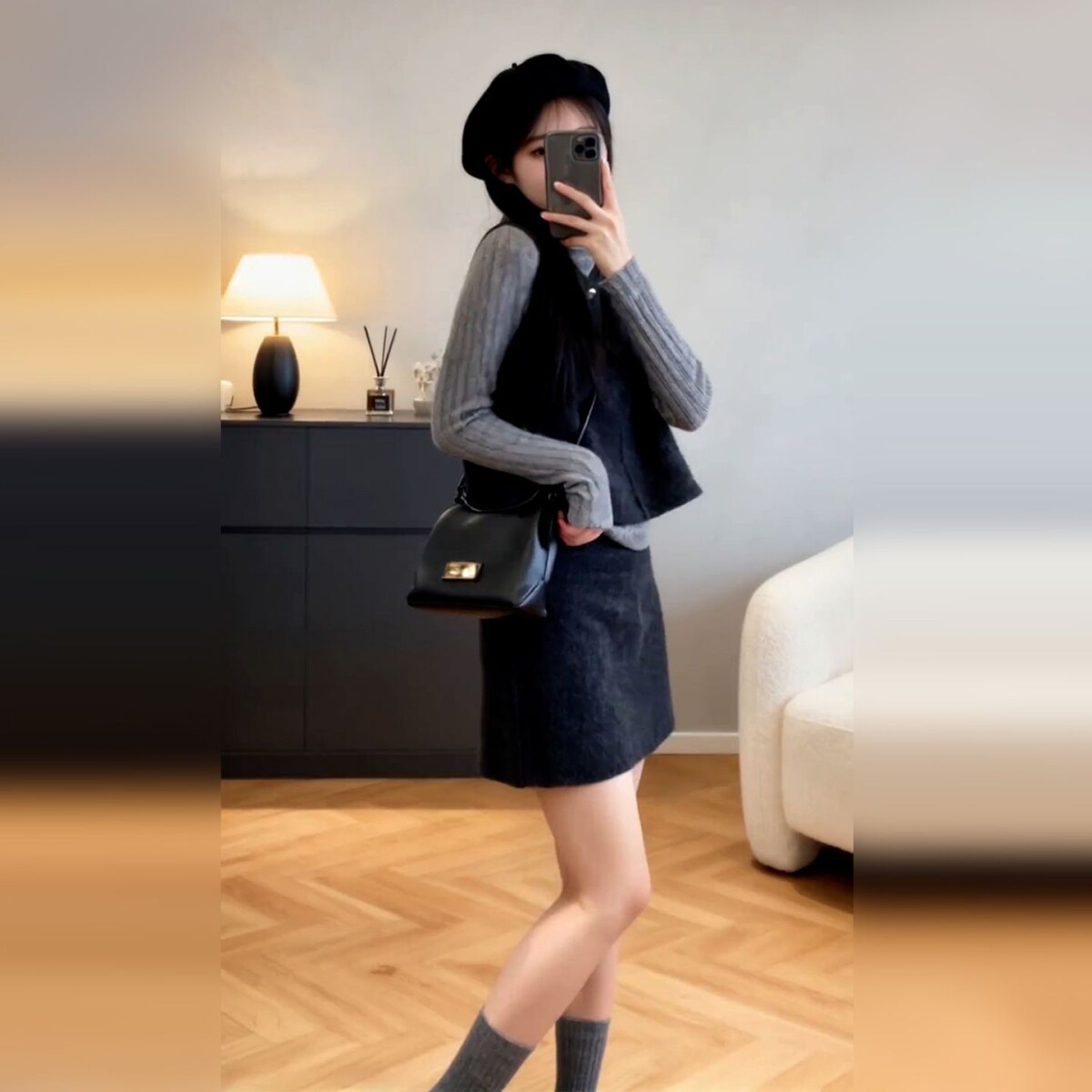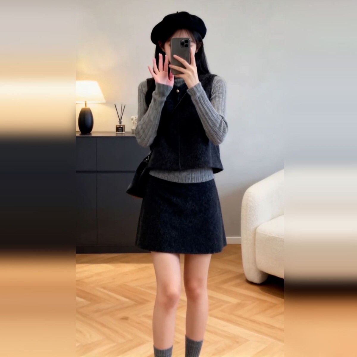 秋冬季韩系穿搭短裙套装2025新款巨好看的冬装小个子连衣裙子女装