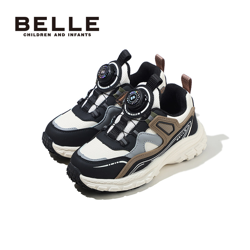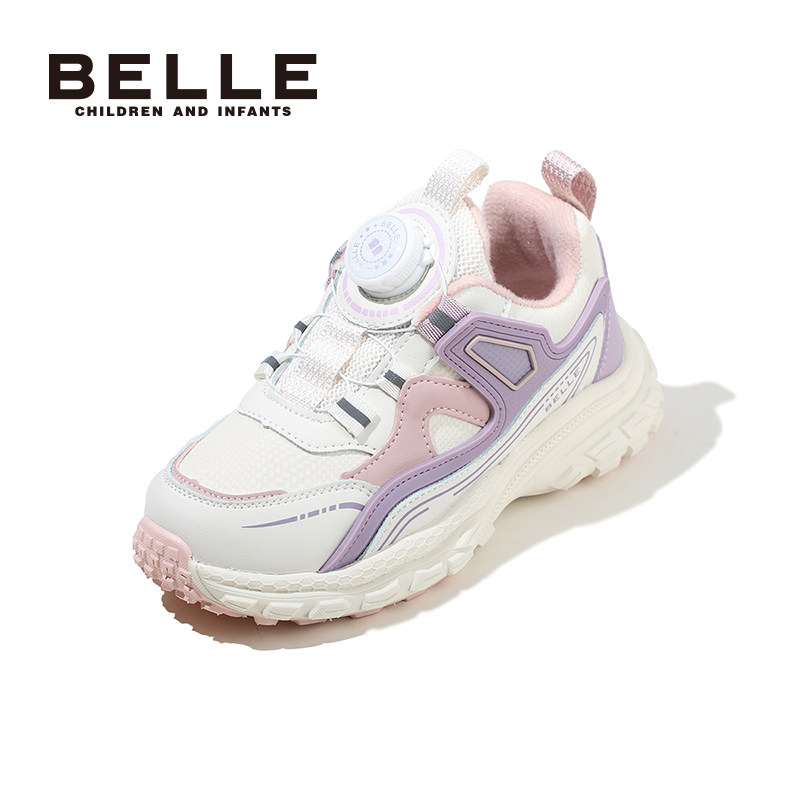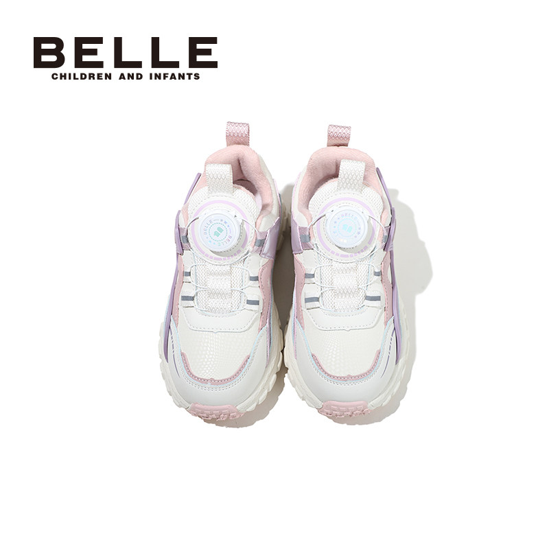 百丽童鞋女童加绒保暖运动鞋男童冬季时尚老爹鞋旋转扣软底跑步鞋