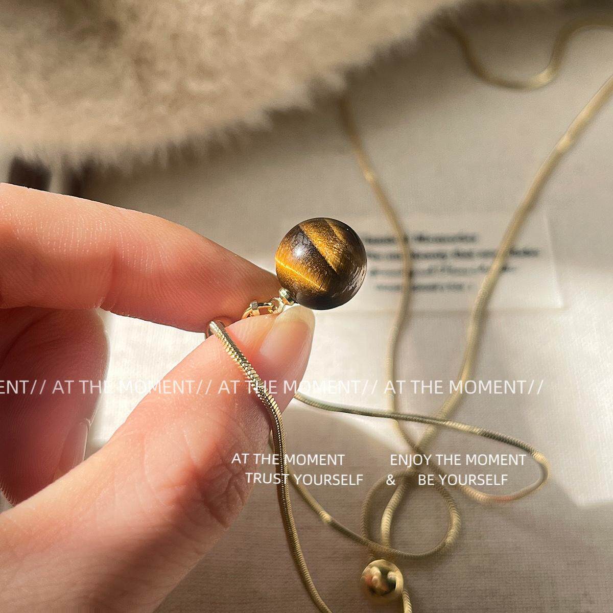 ATM美拉德黄金虎眼石毛衣链女秋冬新款抽拉调节高级感新中式项链