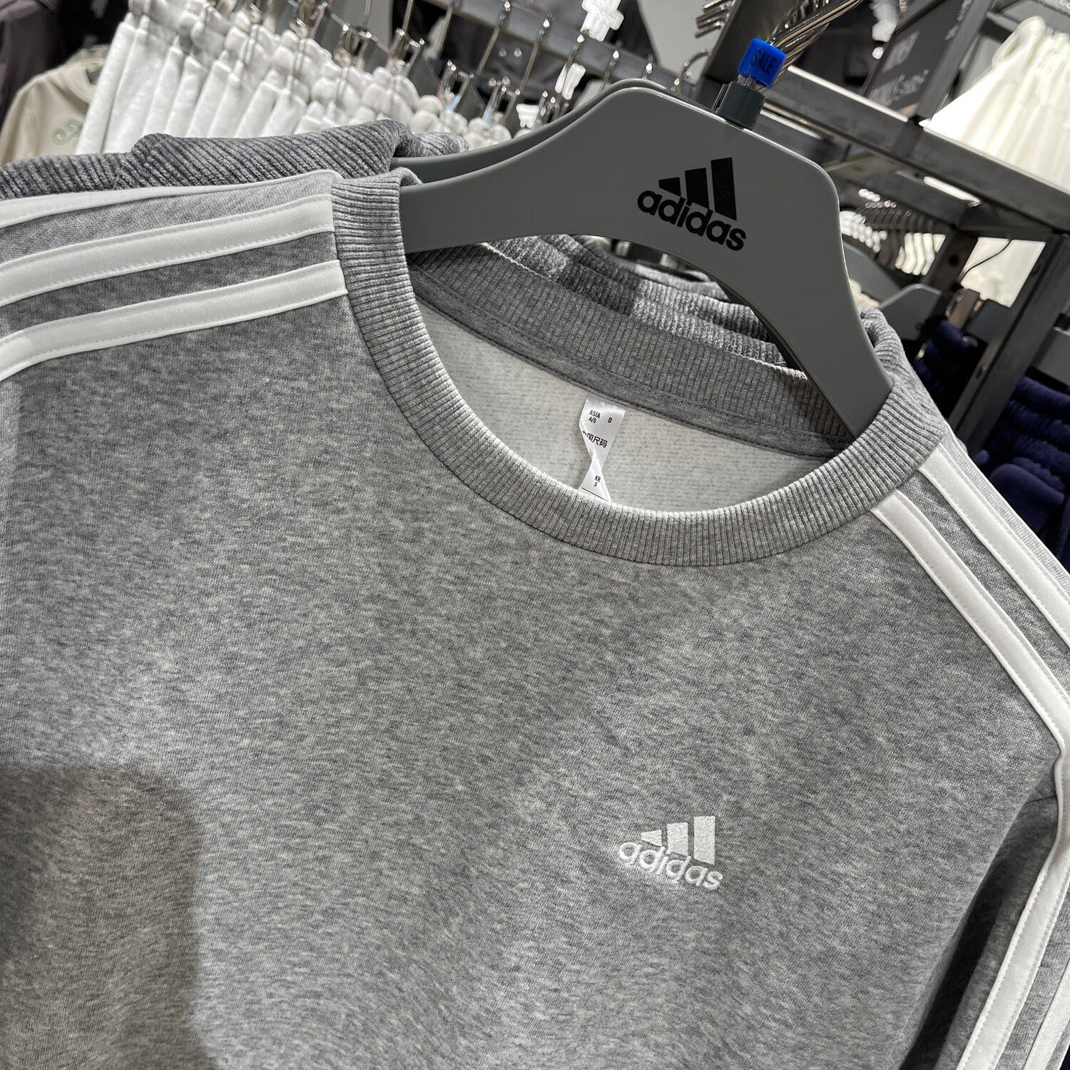 白灰色圆领卫衣女阿迪达斯无帽加绒加厚新款秋冬长袖早秋宽松上衣