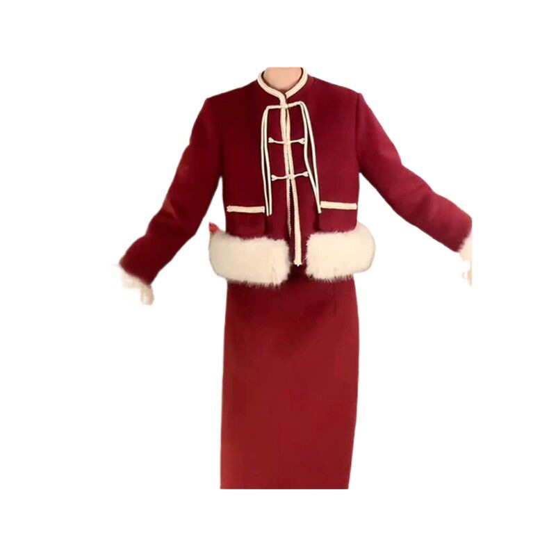 深冬装搭配一整套2025秋冬新款小香风新年红色新中式时尚套装
