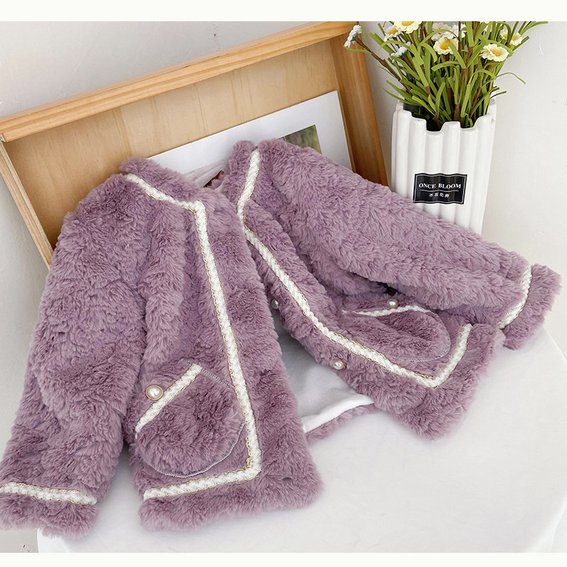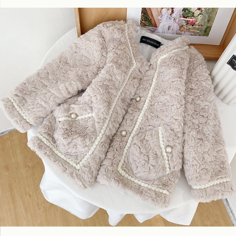 2025冬季新款儿童仿皮草兔毛女童外套韩版时尚加厚毛毛小香风棉服