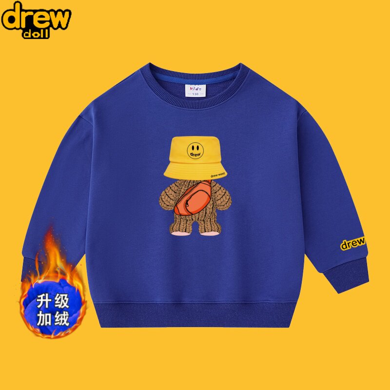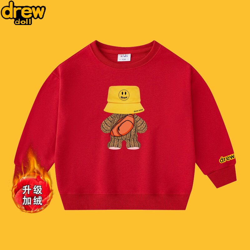 drew Meet中大童儿童圆领卫衣男笑脸美式潮牌秋季加绒加厚男女款