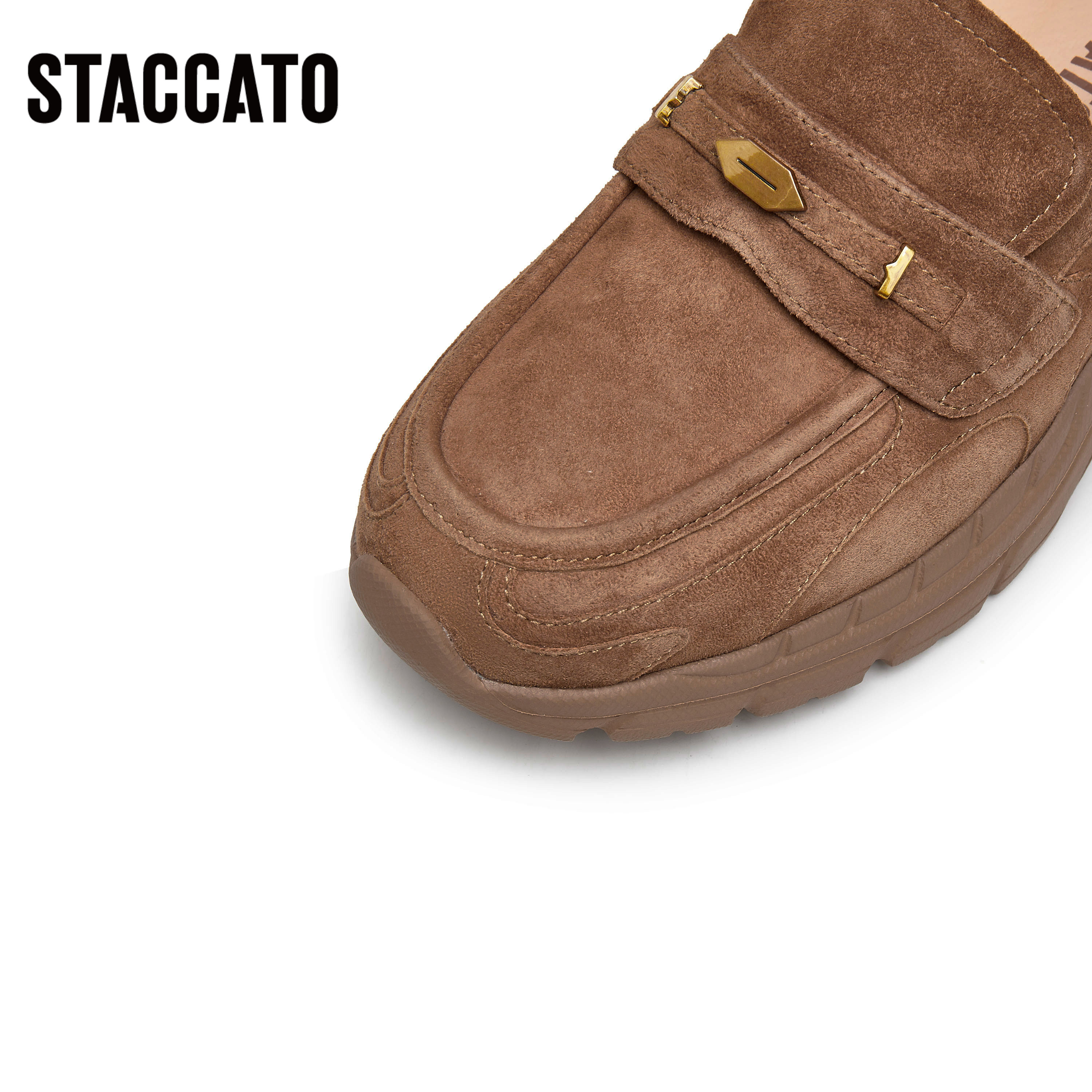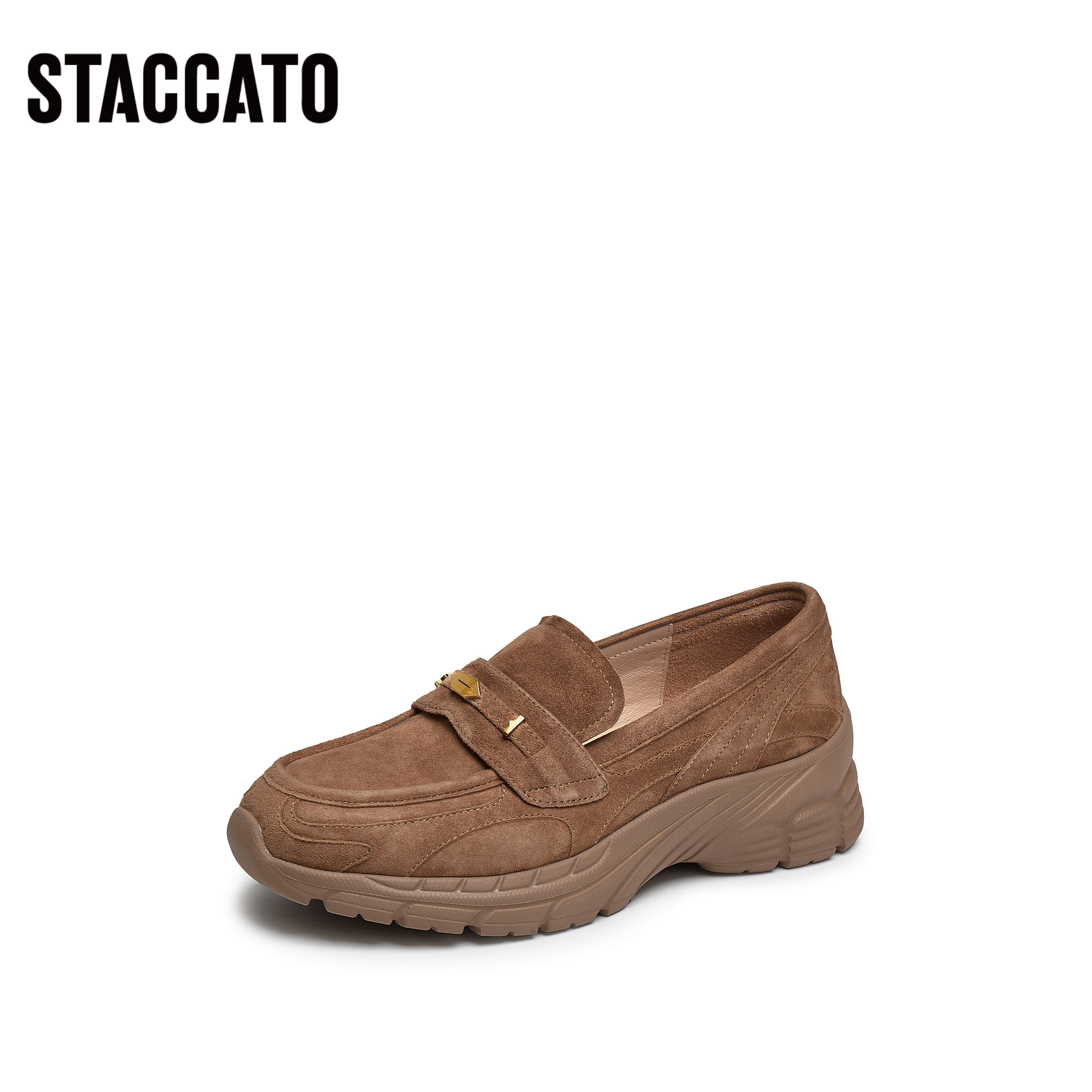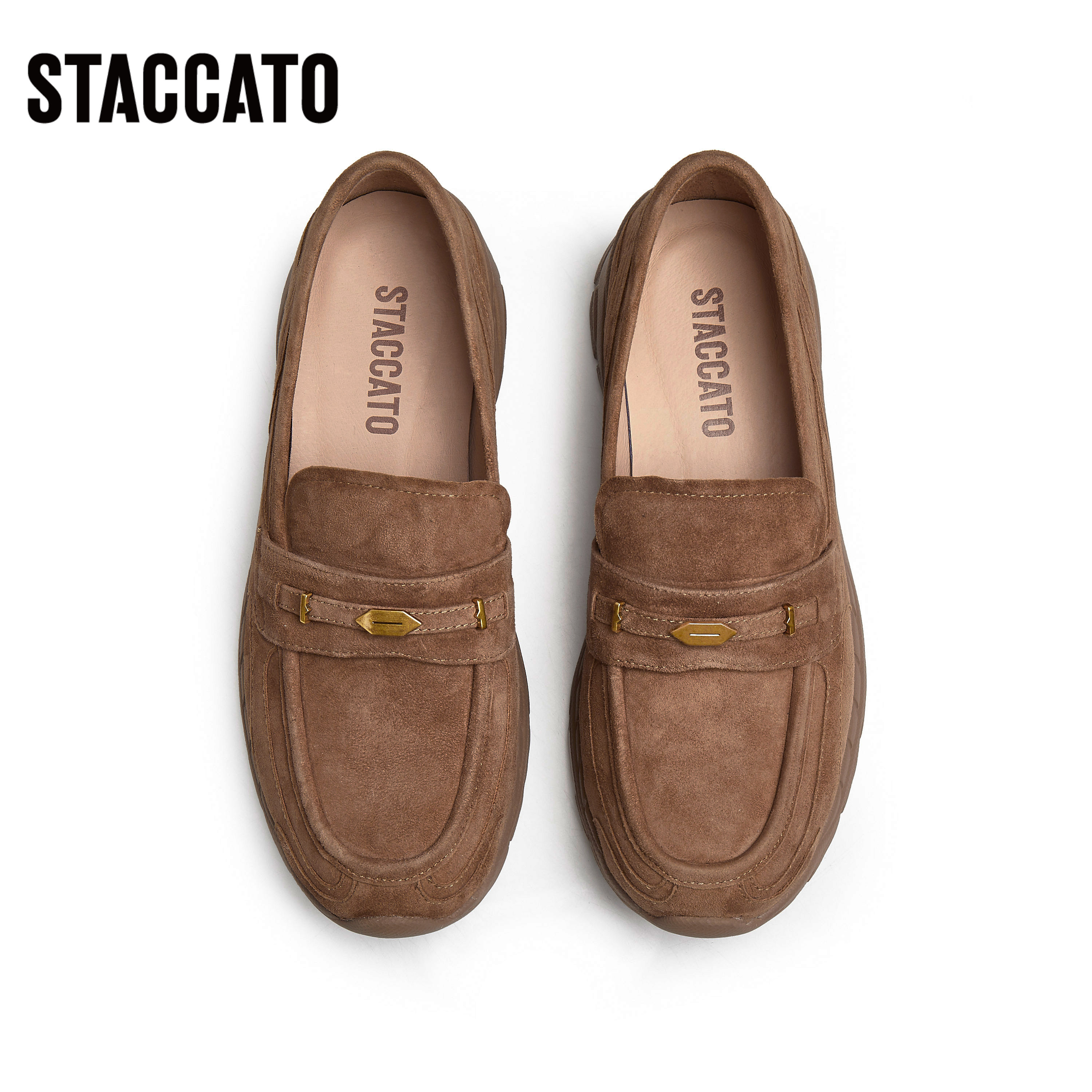思加图官方正品厚底乐福鞋女真皮软底不累脚女鞋D5006AA5
