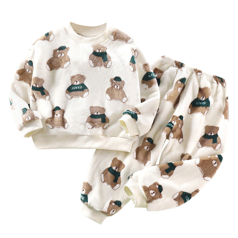 儿童法兰绒睡衣套装韩版男女童加绒加厚家居服中大童保暖内衣套装