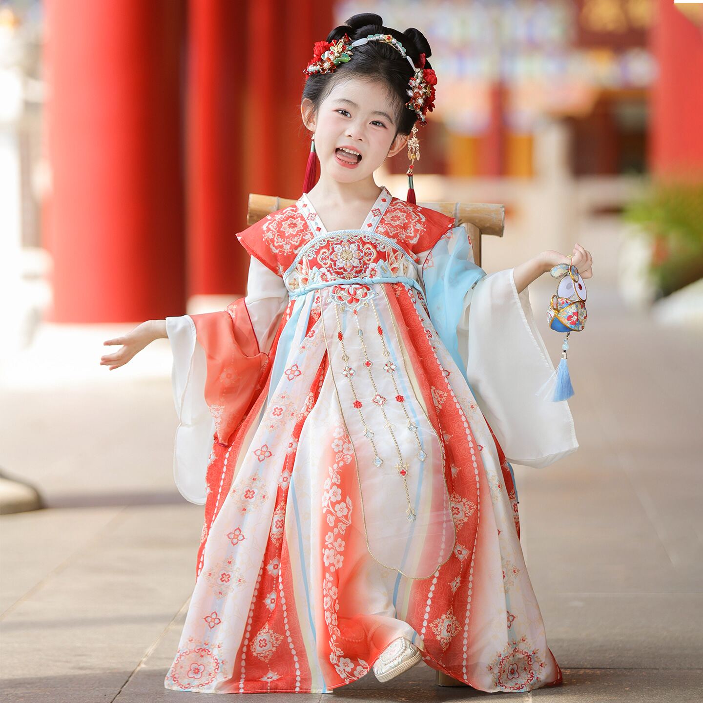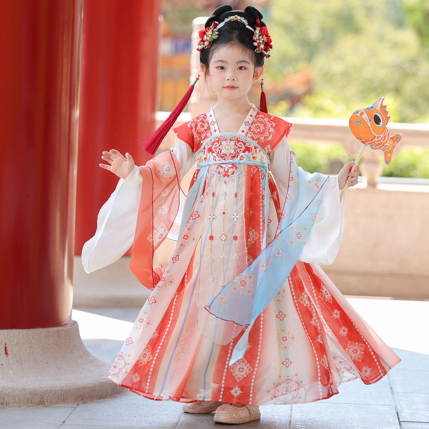 汉服女童春秋2026新款儿童超仙国风公主连衣裙女孩红色唐装春款