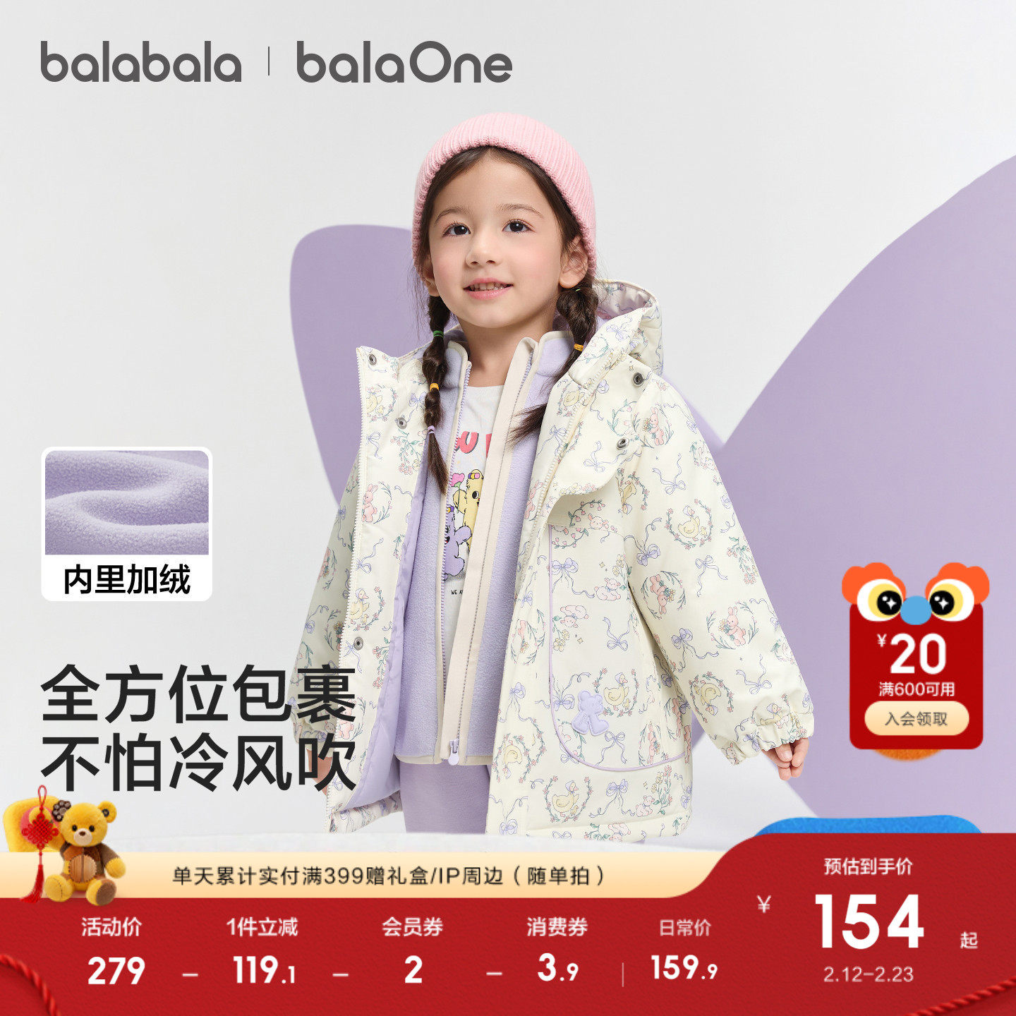 巴拉巴拉童装儿童上衣男童外套女童两件套春秋2026新款三防拜年服