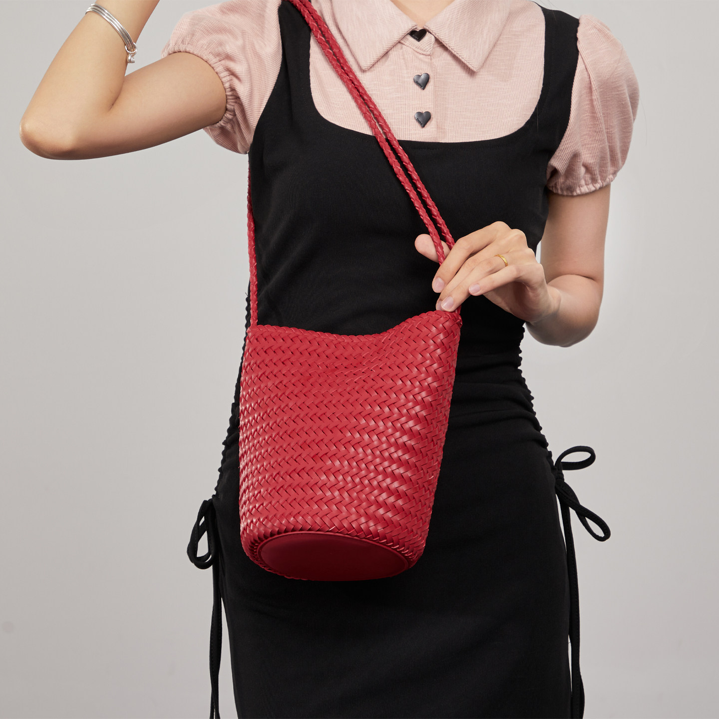 编织女包红色单肩包设计感小众女2025新款斜挎包日常百搭包包女款
