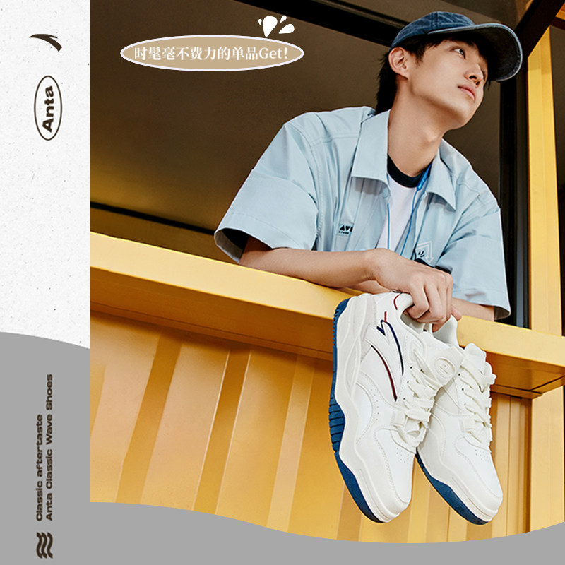 王一博同款波浪板鞋男安踏正品官方旗舰春季新款厚底透气运动鞋男