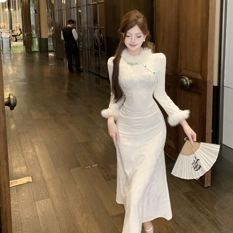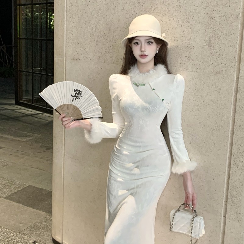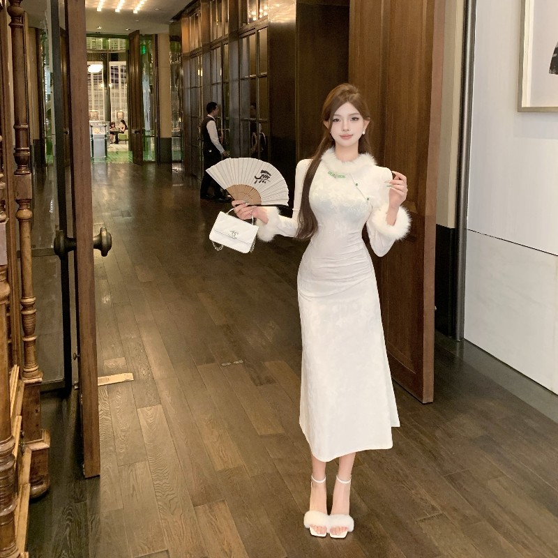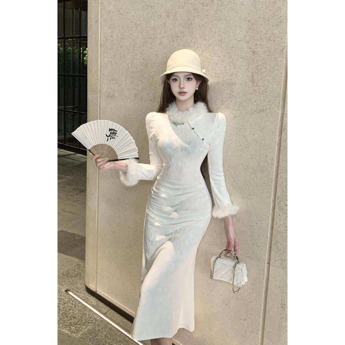 加小码女装冬季矮个子150cm显高XXXS高级感收腰时尚旗袍连衣裙女