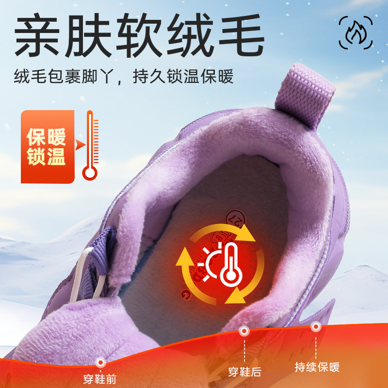 巴布豆儿童鞋官方旗舰店女童运动鞋2024新款秋冬季加绒女孩二棉鞋