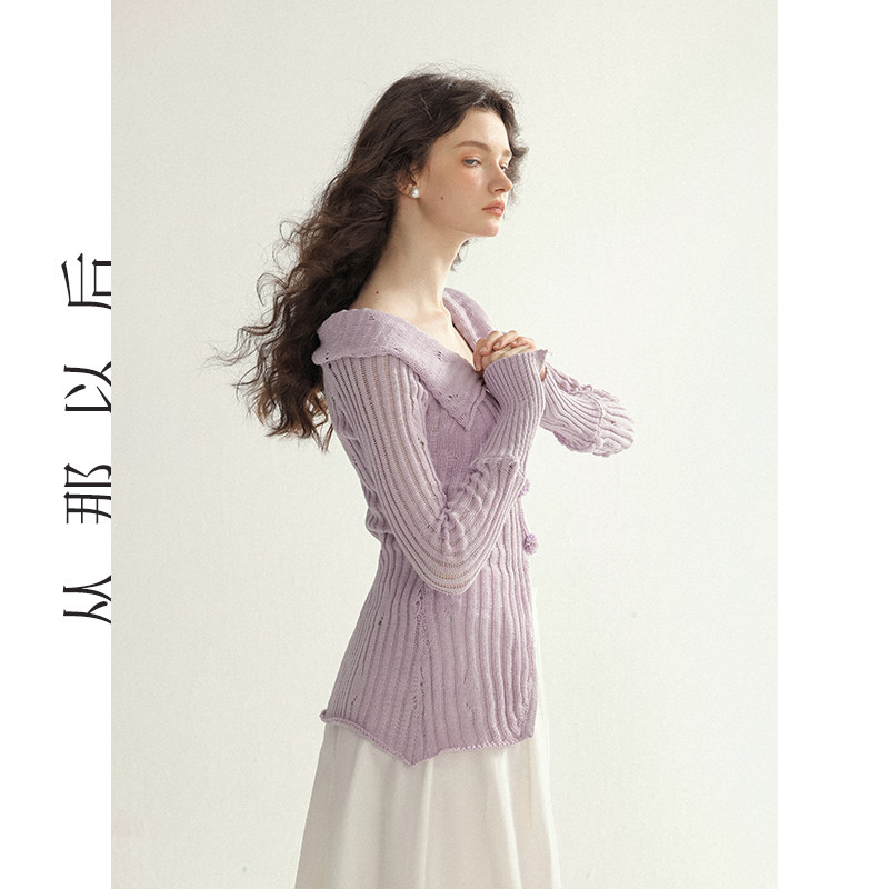 从那以后紫色上衣一字肩针织衫冬季内搭长袖毛衣连衣裙穿搭女秋冬