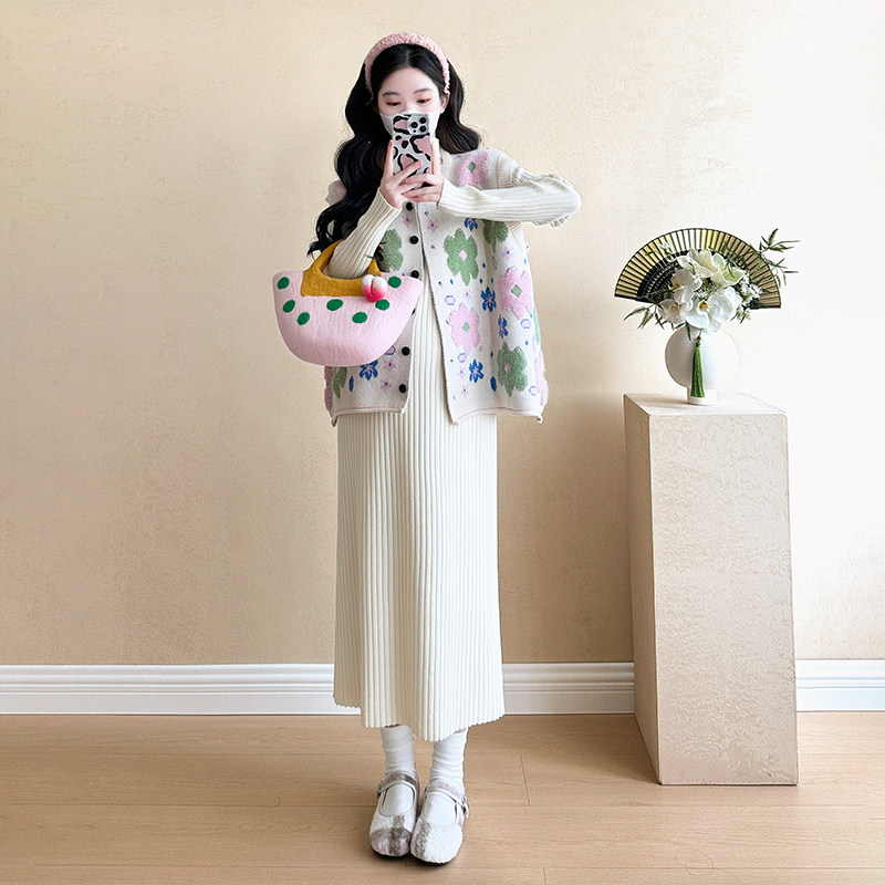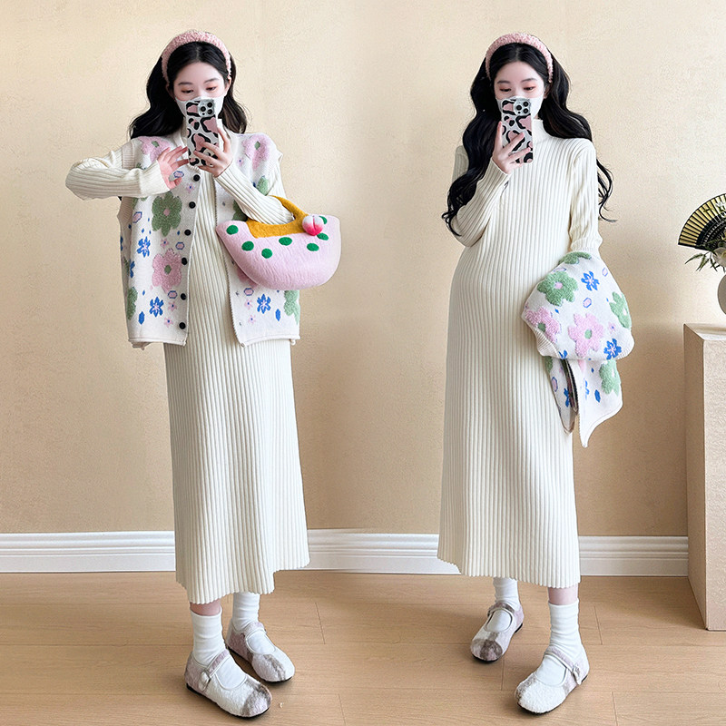 孕妇连衣裙套装秋冬2026新款马甲上衣针织内搭打底毛衣裙两件套女