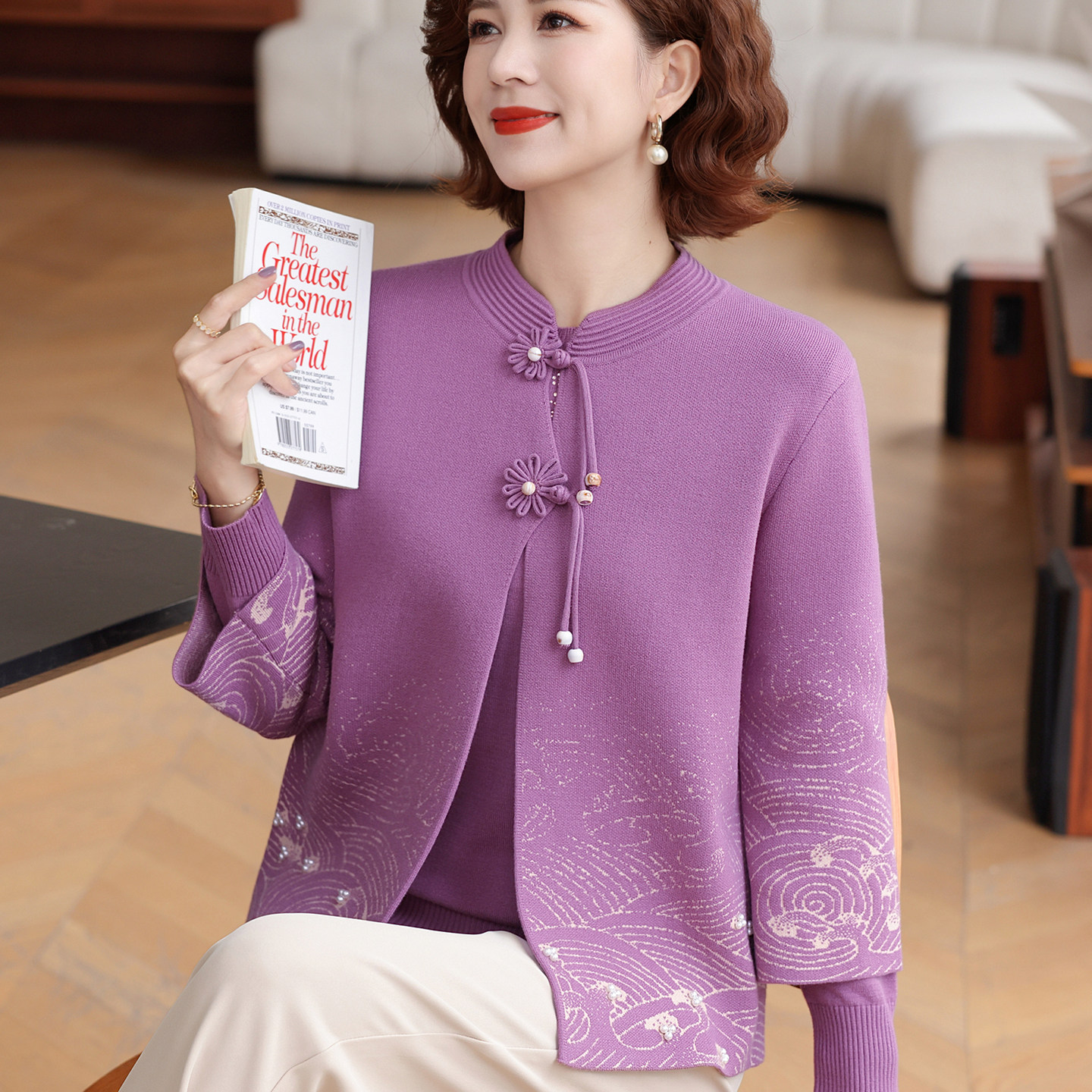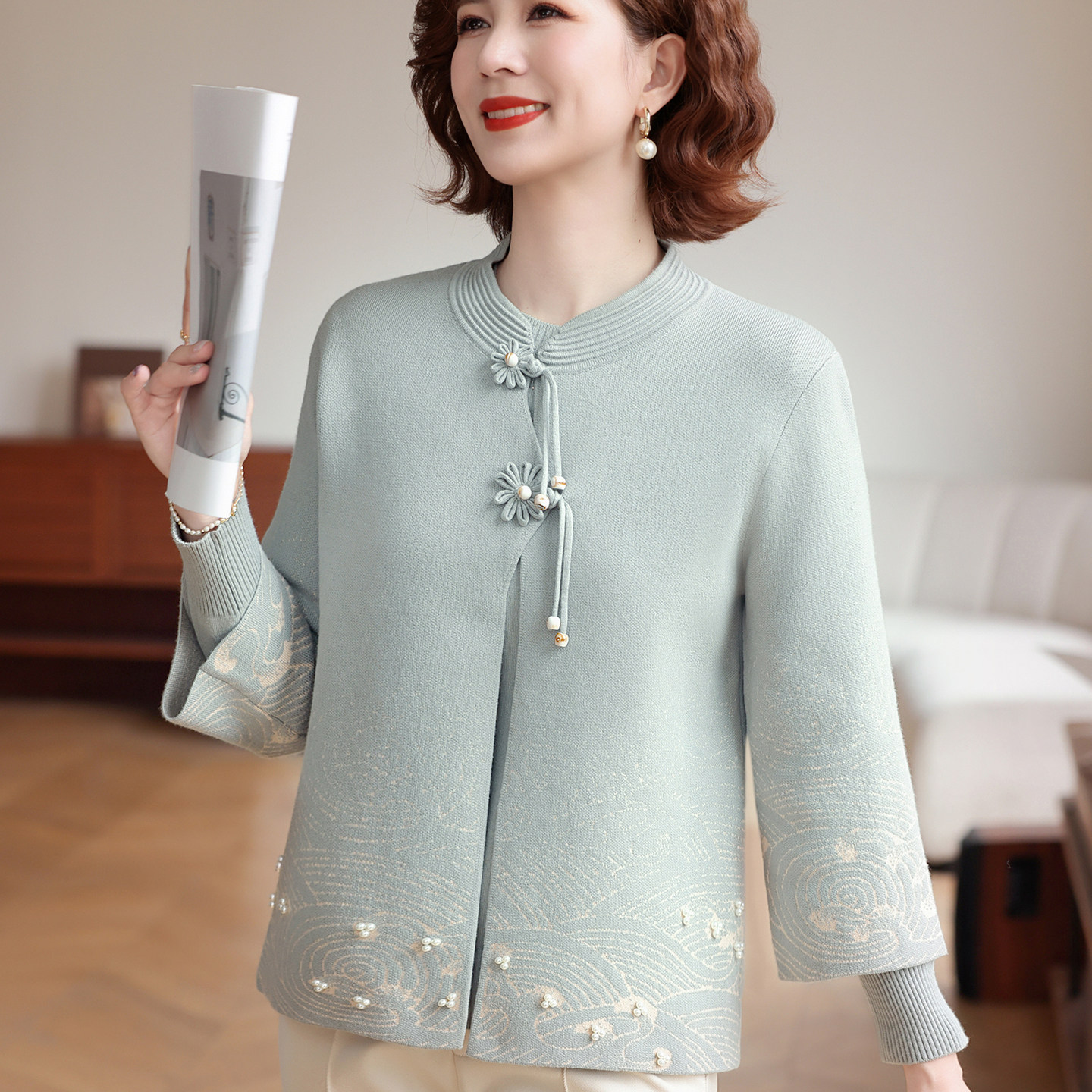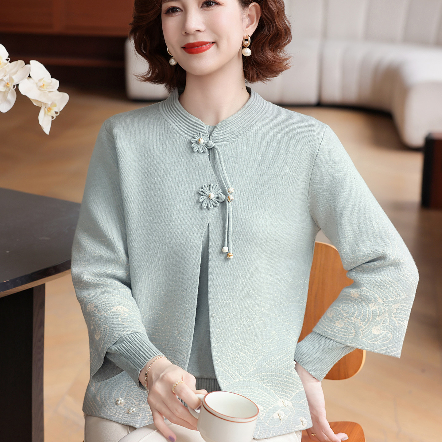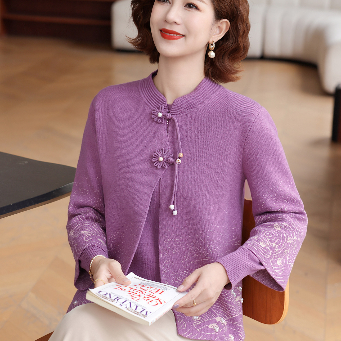 2025秋装新款妈妈加绒毛衣外套中老年女秋冬针织开衫两件套上衣