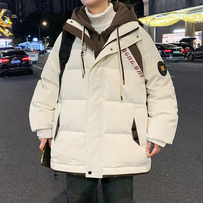 假两件棉衣男款冬季青少年潮流韩版羽绒棉服初中高中学生加厚外套