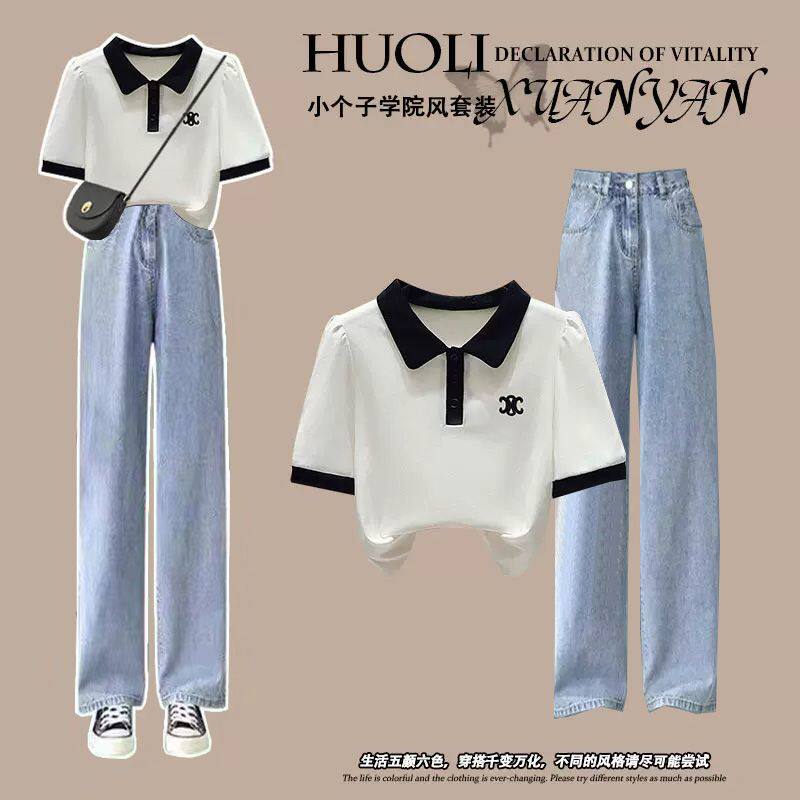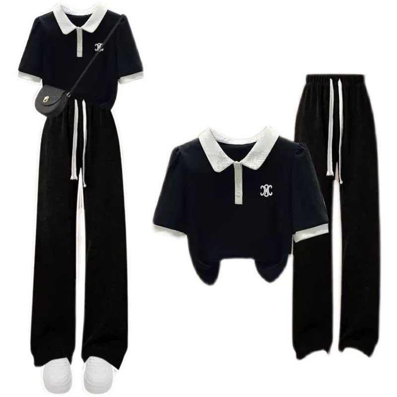 夏季短袖一身黑色套装学生女2023新款韩版时尚胖mm显瘦长裤两件套