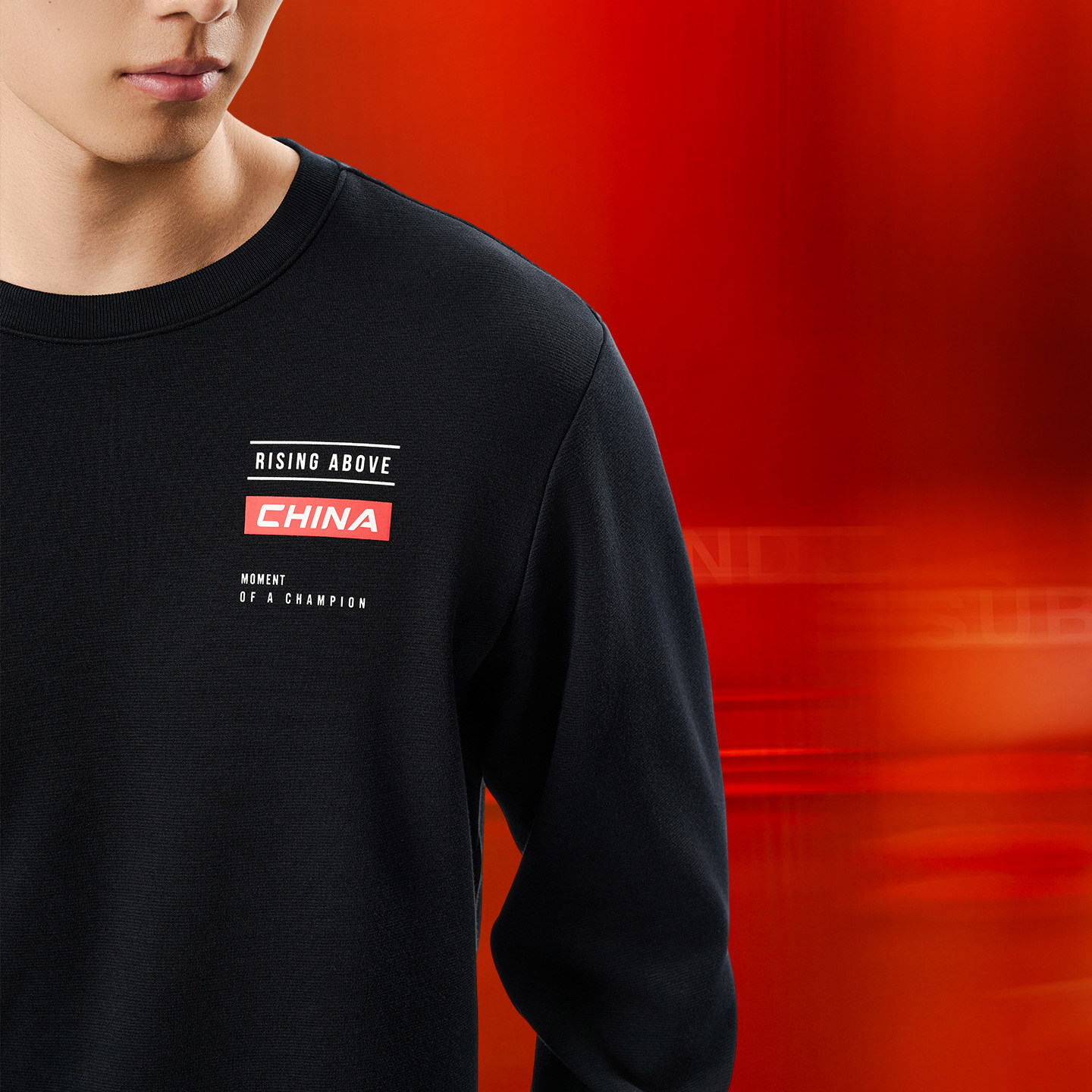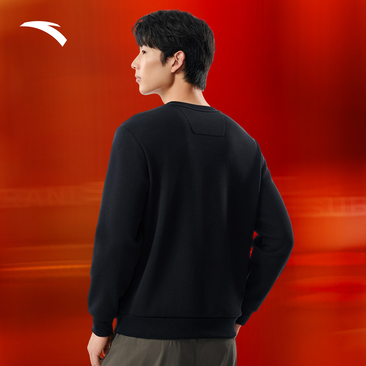 安踏中国卫衣男长袖加绒保暖冬季新款黑色圆领长T男士CHN套头衫
